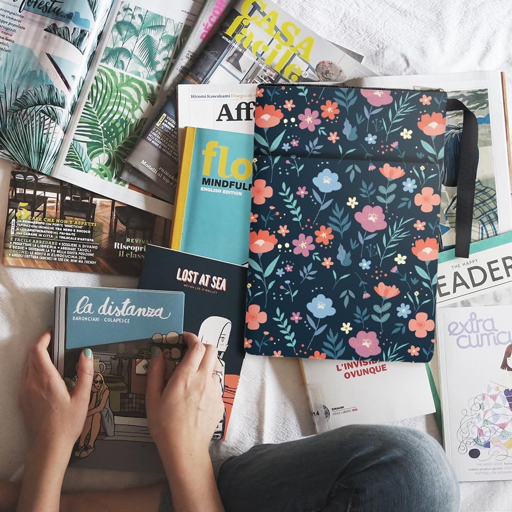 Design con motivo floreale: la copertina del libro è progettata come un motivo floreale in nero, che sembra fiori che sbocciano di notte. I colori classici e il design unico aggiungono un tocco di moda alla copertina del libro. Dimensioni: la confezione include 1 copertina floreale, la dimensione è lunga 34 cm e larga 24 cm, spaziosa per libri con copertina rigida, copertina rigida, tascabile, libro morbido, blocco, romanzo e la maggior parte dei libri in formato standard. Materiale in poliestere: la copertina del libro è realizzata in poliestere con imbottitura leggera e impermeabile, che è durevole e può proteggere i tuoi libri o altri oggetti da polvere e acqua. Con cerniera e tasca esterna: la copertina del libro si chiude con una cerniera liscia, in modo che il libro non scivoli accidentalmente fuori dalla copertina, migliorando al tempo stesso la tenuta e la sicurezza. Ha una tasca aggiuntiva e le dimensioni sono 25 cm di lunghezza e 14 cm di larghezza, puoi mettere qui piccoli oggetti per mantenere le cose in ordine. Ampia applicazione: la copertina del libro ha una corda portatile, che è comoda da trasportare, quindi gli accessori del libro non servono solo come protezione del libro, ma anche come custodia per il trasporto, ma come borsa da viaggio, borsa per cosmetici, regali a tema del club del libro, organizzazione di forniture per ufficio, grande borsa con cerniera e così via.