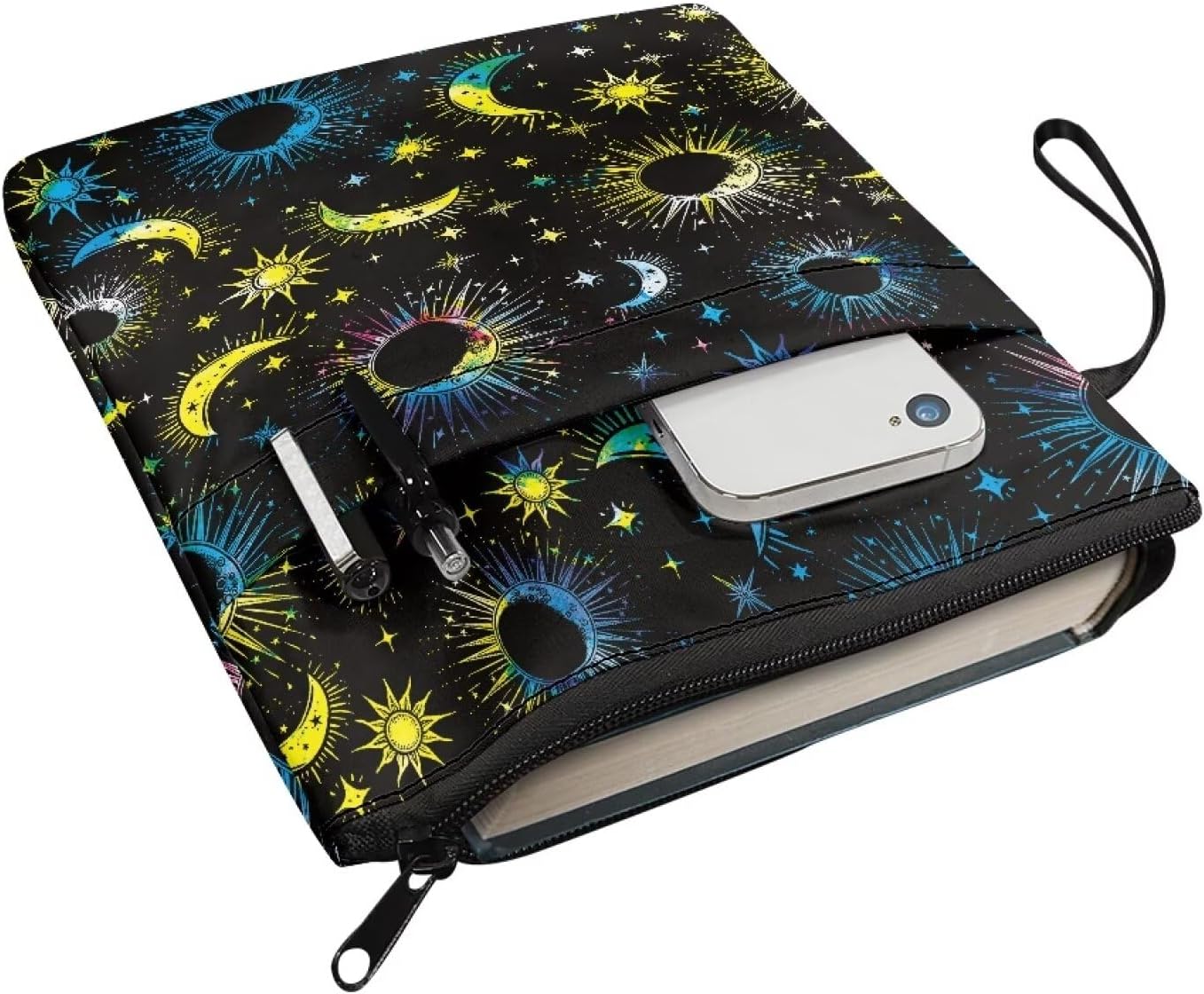 Perché scegliere la nostra custodia per libri? La nostra custodia per libri è realizzata in tela 800D di alta qualità e materiale impermeabile, e la rigorosa tecnologia sartoriale assicura che la custodia per libri che ricevi sia perfetta. Nessun odore irritante, nessun danno alla salute, nessun materiale di bassa qualità. È solo una custodia per libri di alta qualità! Dimensioni decenti: la nostra custodia per libri misura 29 x 22 cm, una dimensione decente per una varietà di libri, come libri di testo, libri tascabili, copertine rigida, romanzi e molto altro ancora. Si prega di verificare le dimensioni prima dell'acquisto per assicurarsi che sia compatibile con il tuo libro. Protezione per libri: questa custodia per libri è un modo alla moda per proteggere i tuoi libri dalla polvere o dalle pagine strappate e piegate. Il divertente motivo in tessuto rende questa copertina non solo un accessorio essenziale, ma anche un regalo meraviglioso e indimenticabile per un amante dei libri. Questo articolo non è destinato all'uso da parte dei bambini di età inferiore ai 3 anni. Tasca extra sulla manica: la custodia per libri è realizzata in tela di cotone/poliestere, può essere lavata quando si sporca. La copertina del libro è anche arricchita da una tasca perfetta per contenere un quaderno, un piccolo diario, penna/matita, telefono, Kindle o anche alcuni libri più piccoli! Motivo personalizzato: la nostra copertina in poliestere offre una gamma di motivi personalizzati, tra cui girasoli, gatti, cani, galassie e altro ancora. Questi motivi unici rendono la custodia per libri un regalo ideale per gli amanti dei libri, famiglie o amici in occasioni speciali come festa della mamma, anniversario, festa dei bambini, compleanno, cerimonia di laurea, Halloween, Natale e così via.