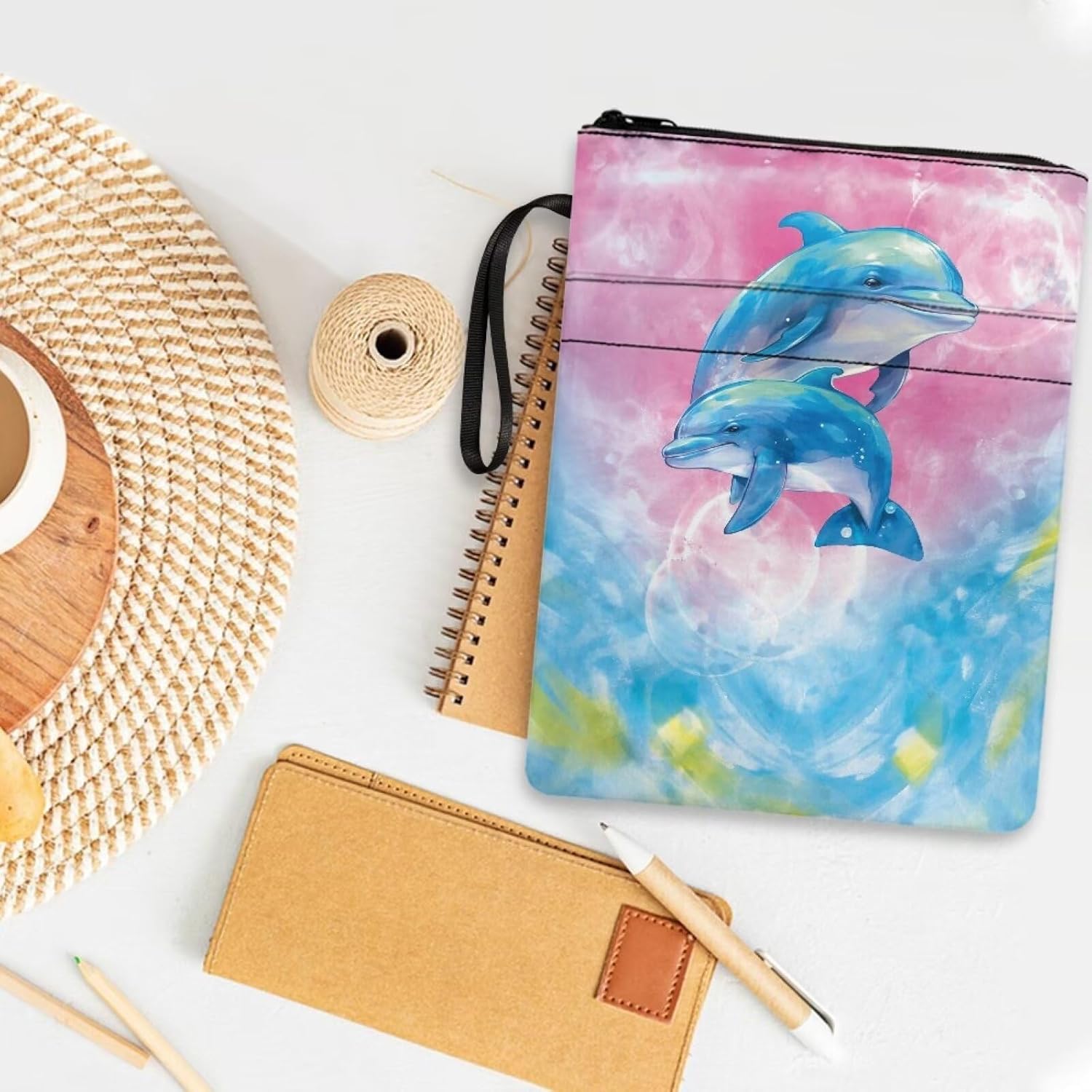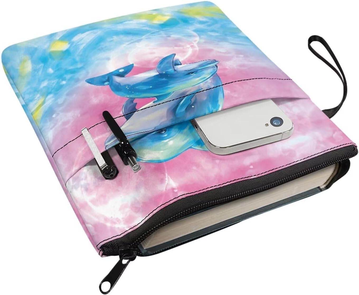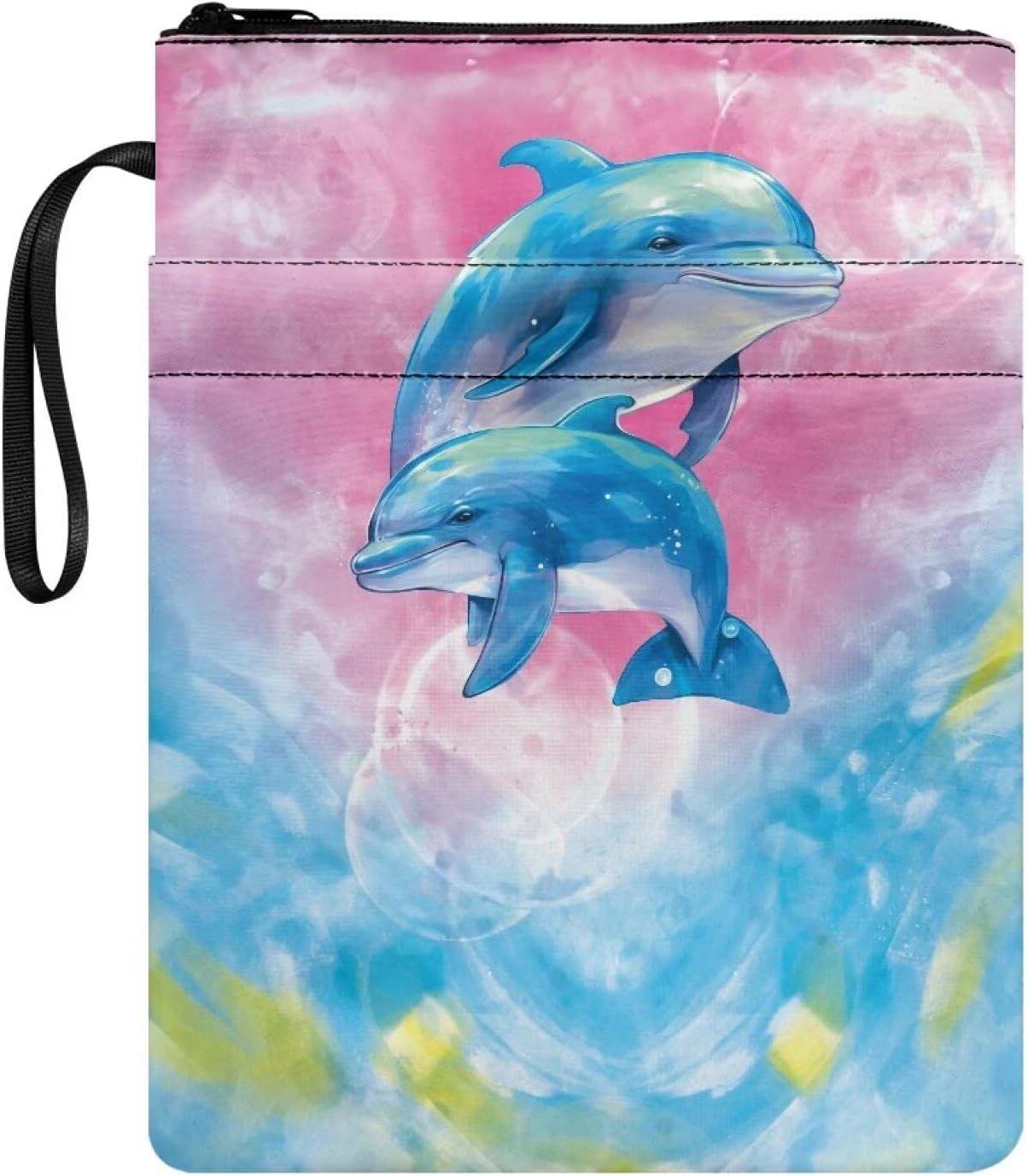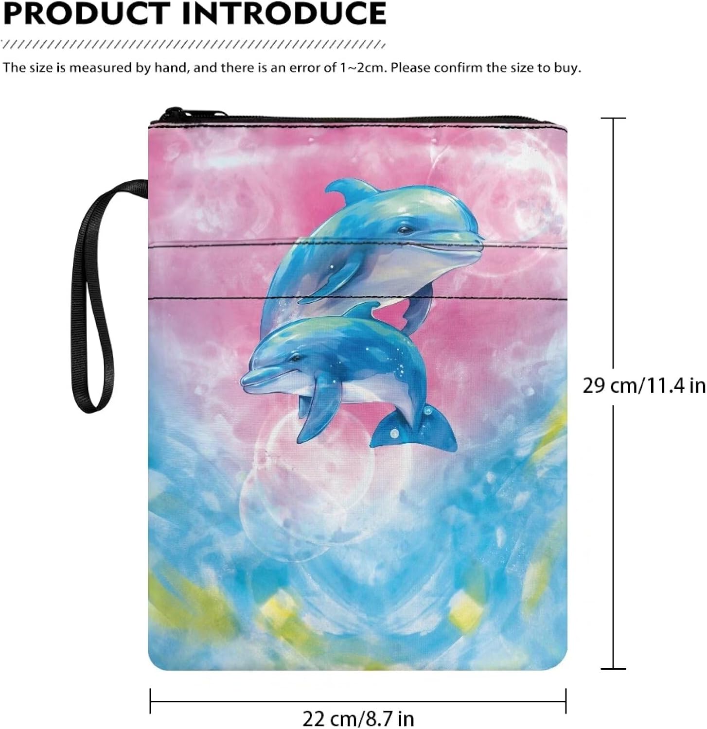 Copertine per libri in tinta unita delfino blu per copertine di libri di carta scolastica con tasca frontale portatile 11 "x 8" simpatico animale marino