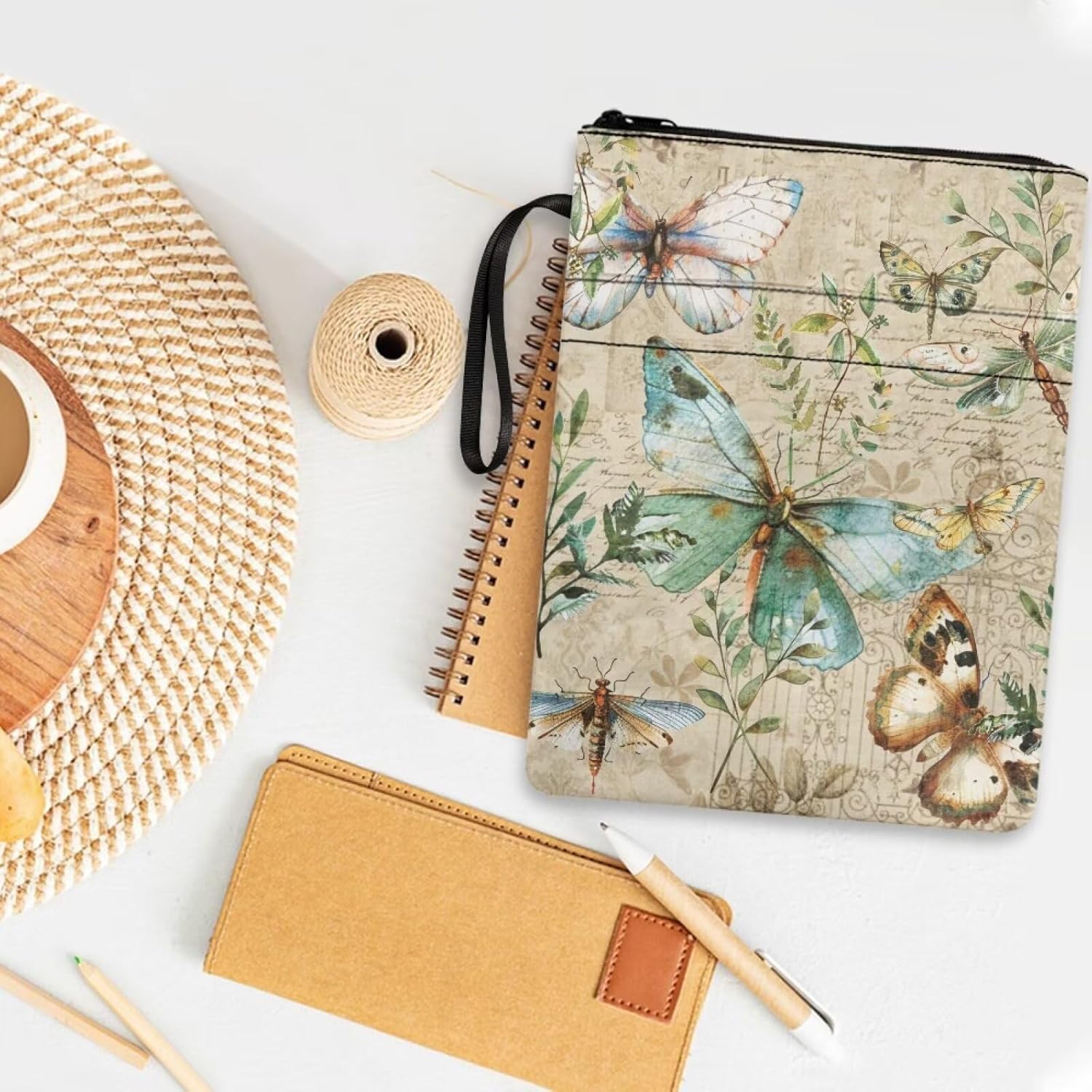 Copertine per libri per copertine rigide decorative con stampa di farfalle blu, custodia protettiva per libro con cerniera, calzini per gli amanti della lettura, donne e ragazze adolescenti