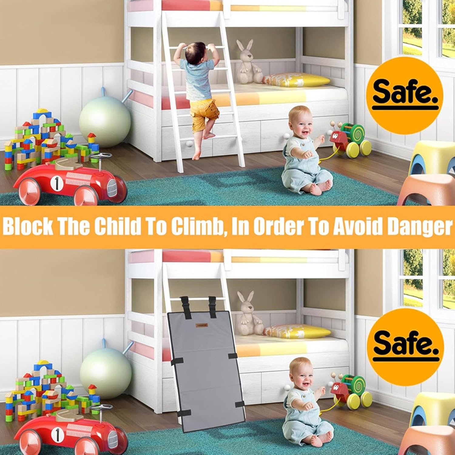 [Proteggi il tuo bambino dagli incidenti] Questa copertura per la scala del letto a castello è specificamente progettata per impedire ai tuoi piccoli di salire la scala senza supervisione. La sua costruzione robusta as che il tuo bambino rimanga al sicuro, riducendo il rischio di cadute e lesioni. per i genitori che danno la priorità alla sicurezza e alla tranquillità. [Materiale robusto e durevole] Realizzato in tessuto Oxford 600D pesante rivestito con PVC impermeabile, questa copertura su scala è costruita per durare. Il rivestimento interno presenta una forte scheda PP, che fornisce ulteriore durata e stabilità. Non è solo sicuro ma anche resistente all'usura, rendendolo un investimento duraturo per la sicurezza di tuo figlio. [Design versatile per usi multipli] Misurazione di 78x39 cm, questo pad di ladder è l'ideale per i letti a castello per bambini. Tuttavia, il suo design versatile consente di essere utilizzato su vari tipi di scala, tra cui palestre da gioco, sale da ginnastica, negozi al dettaglio e scale per la casa da giardino. È una soluzione pratica per qualsiasi ambiente in cui la sicurezza dei bambini è una preoccupazione. [Facile installazione con fibbie regolabili] L'installazione di questo coperchio della scala è un gioco da ragazzi. Con sei fibbie di sicurezza regolabili, puoi facilmente personalizzare la lunghezza per adattarsi perfettamente alla scala. Non sono richiesti strumenti aggiuntivi, rendendolo un'aggiunta senza problemi alla tua casa. Il suo design intuitivo garantisce una configurazione rapida e . [Piegabile per una comoda memoria] Quando non è in uso, questo coperchio della scala del letto a castello può essere ripiegato ordinatamente per una facile conservazione. Il suo design compatto consente di adattarsi a cassetti o armadi senza occupare molto spazio. Questa funzione lo rende una soluzione pratica e conveniente per le famiglie che apprezzano sia la sicurezza che l'organizzazione.