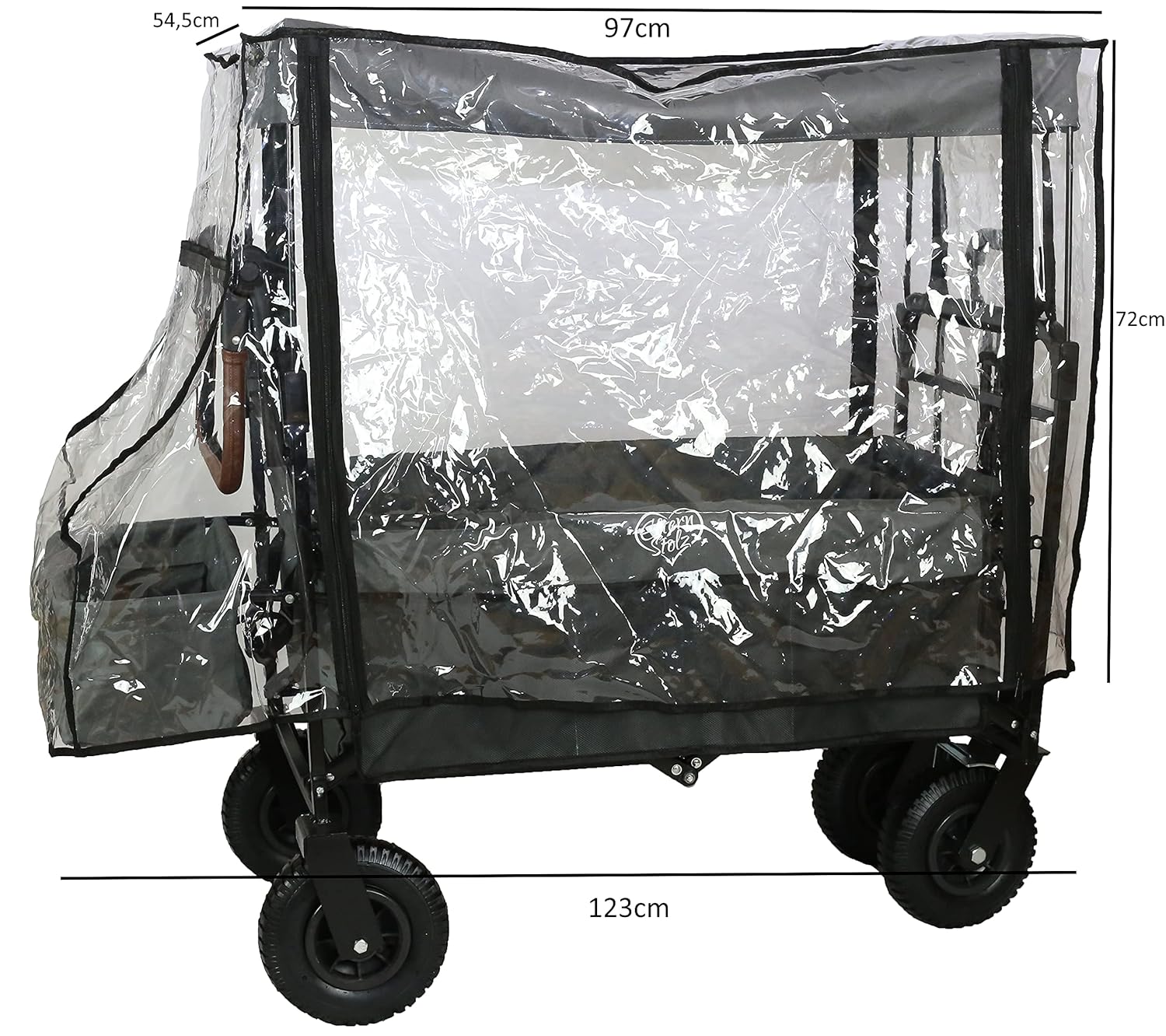 Le dimensioni della copertura antipioggia per carretti a mano sono visibili nella figura 2 copertura antipioggia universale per carretto in PEVA copertura antipioggia universale priva di sostanze nocive adatta per il produttore di carretti Pinolino Kesser Sekey Accessori Fuxtec copertura antipioggia inodore, senza ftalati e senza PVC copertura antipioggia universale adatta con cerniera PEVA è polietilene vinil acetato e quindi ecologico e riciclabile