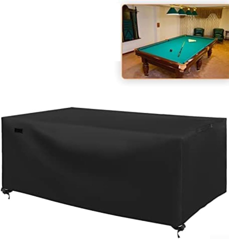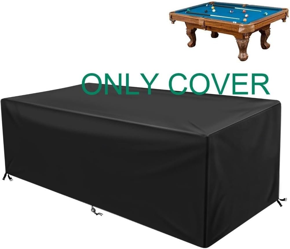 Protezione completa: progettato per la maggior parte dei tavoli da biliardo da 2,4 m, misura 260 x 135 x 69 cm per proteggere completamente le superfici da pioggia, neve, polvere e sole, contribuendo a garantire che il tavolo rimanga in ottima forma tutto l'anno. Tessuto impermeabile di lunga durata: realizzato in tessuto Oxford 600D ad alta densità, offre una robusta resistenza all'umidità e all'usura, adatto sia per cortili esterni che per sale giochi al coperto. Vestibilità sicura antivento: dotata di coulisse regolabile e robuste fibbie alla base per evitare movimenti o sollevamenti durante forti venti, mantenendo la copertura saldamente in posizione. Versatilità perfetta: funziona con vari stili di biliardo e biliardo, offrendo una copertura affidabile sia in ambienti all'aperto che in aree ricreative chiuse. Superfici facili da pulire: il materiale liscio e impermeabile consente di rimuovere rapidamente sporco o detriti con un panno umido, mantenendo l'aspetto fresco della copertura e prolungandone la durata.