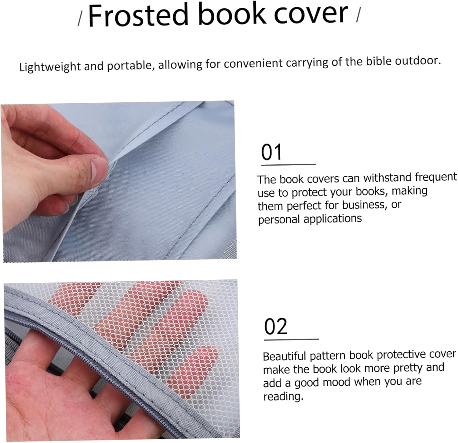 Una borsa portaoggetti dal motivo delicato, progettata per organizzare e proteggere libri, comprese bibbie o altri libri. La copertina del libro presenta un motivo alla moda, aggiungendo un tocco di stile ai tuoi libri. Realizzato con materiali in tessuto, garantisce un uso duraturo e protezione per i tuoi libri. Il design della copertina del libro è semplice e facile da usare, offrendo comodità per archiviare e accedere ai tuoi libri. Questa copertina del libro protegge efficacemente i tuoi libri da eventuali danni, mantenendoli anche organizzati.