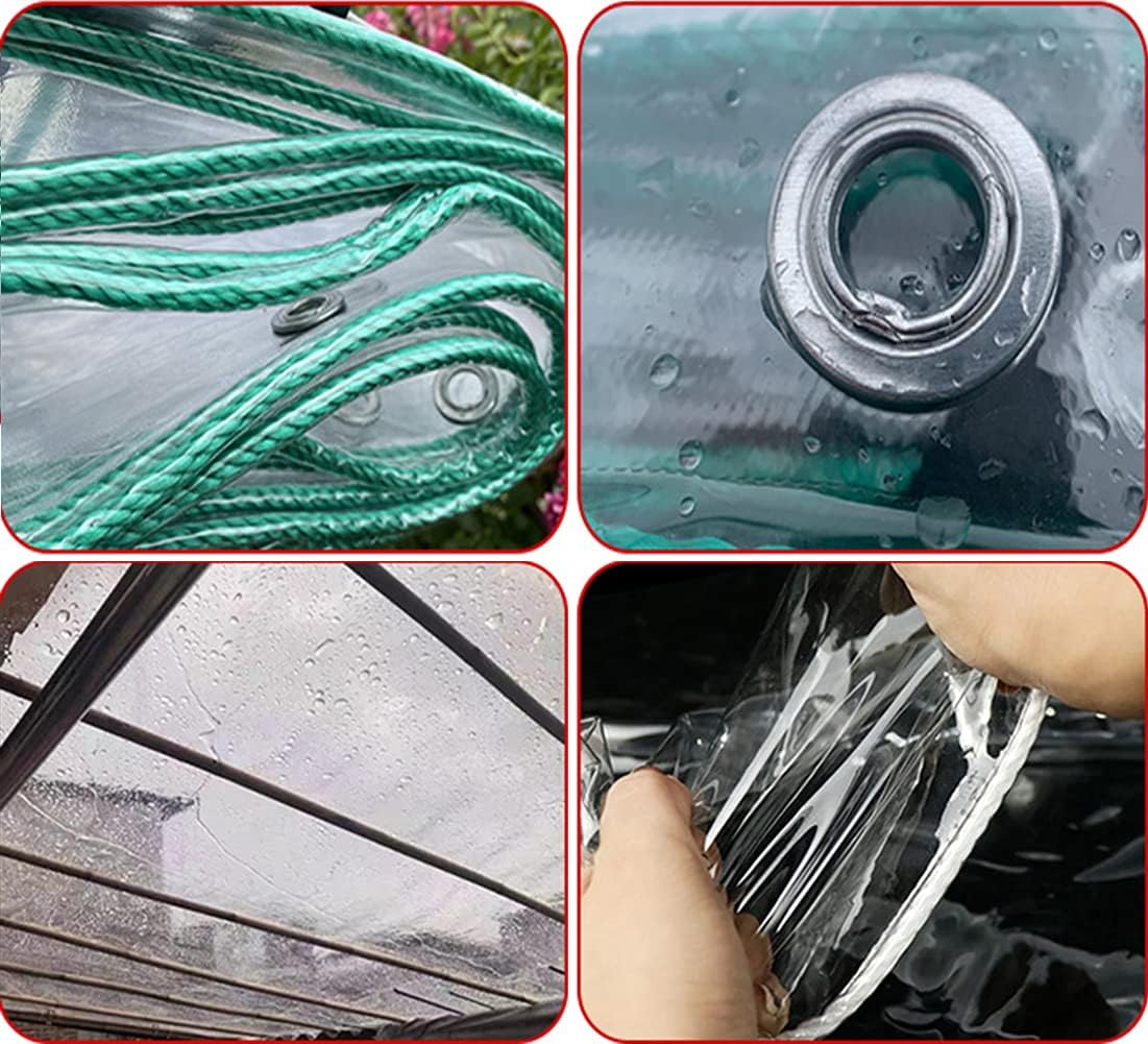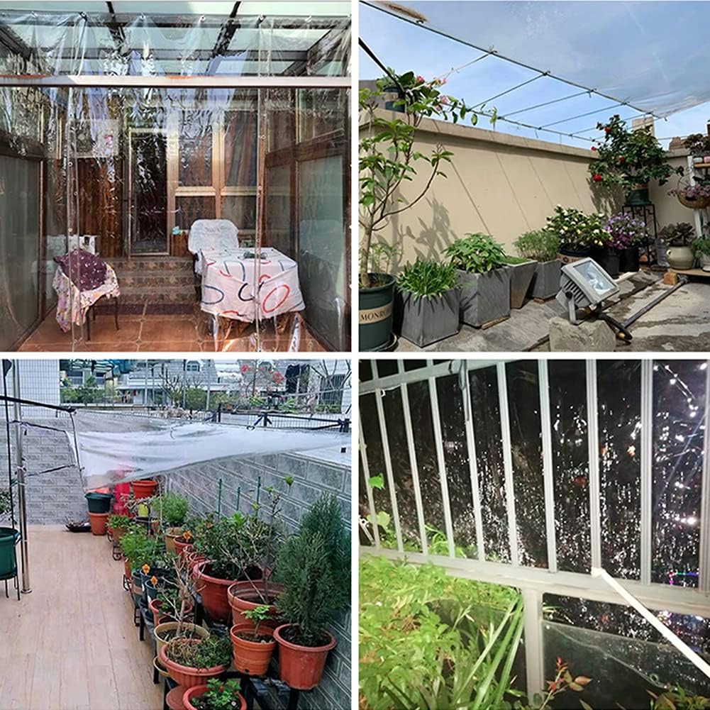 Materiale durevole: il nostro telone impermeabile è realizzato in nuovo PVC ad alta densità, che ha buone funzioni impermeabili e anti-invecchiamento. Facile da installare: gli occhielli in acciaio inossidabile distribuiti uniformemente forniscono un metodo di installazione semplice, punti di ancoraggio facili da impostare e utilizzano la corda allegata per collegarsi alla recinzione o al paletto. Per risparmiare energia. Usi: compatibile con varie occasioni, molto adatto per l'uso su terrazze o giardini, coperture per piante in serra, cucce per cani, verande, serre, tende da sole, rivestimenti per pavimenti, tende da sole, barche, camper o coperture per piscine. Dettagli: il telone trasparente pesa circa 680 g/m²; ha resistenza allo strappo, durevolezza e lavabilità. Lo spessore è 0,55 mm. Servizio di qualità: desideriamo esplorare la struttura, gli elementi e l'ordine dei diversi corridoi/corsie/giardini per fornire teloni di migliore qualità. Assicurati di fornirti un ambiente di vita pulito e confortevole. Prestiamo attenzione alla qualità del prodotto e prestiamo maggiore attenzione all'esperienza di acquisto dei clienti. Ogni prodotto acquistato da noi fornirà un servizio clienti cordiale. Se avete domande, non esitate a contattarci!