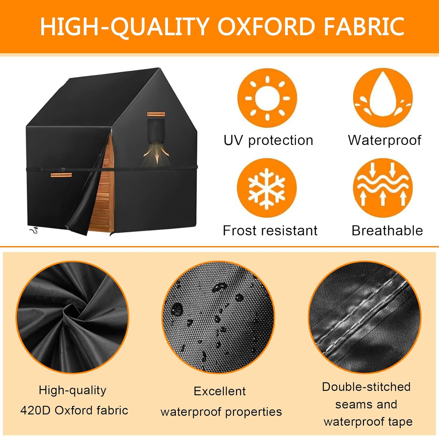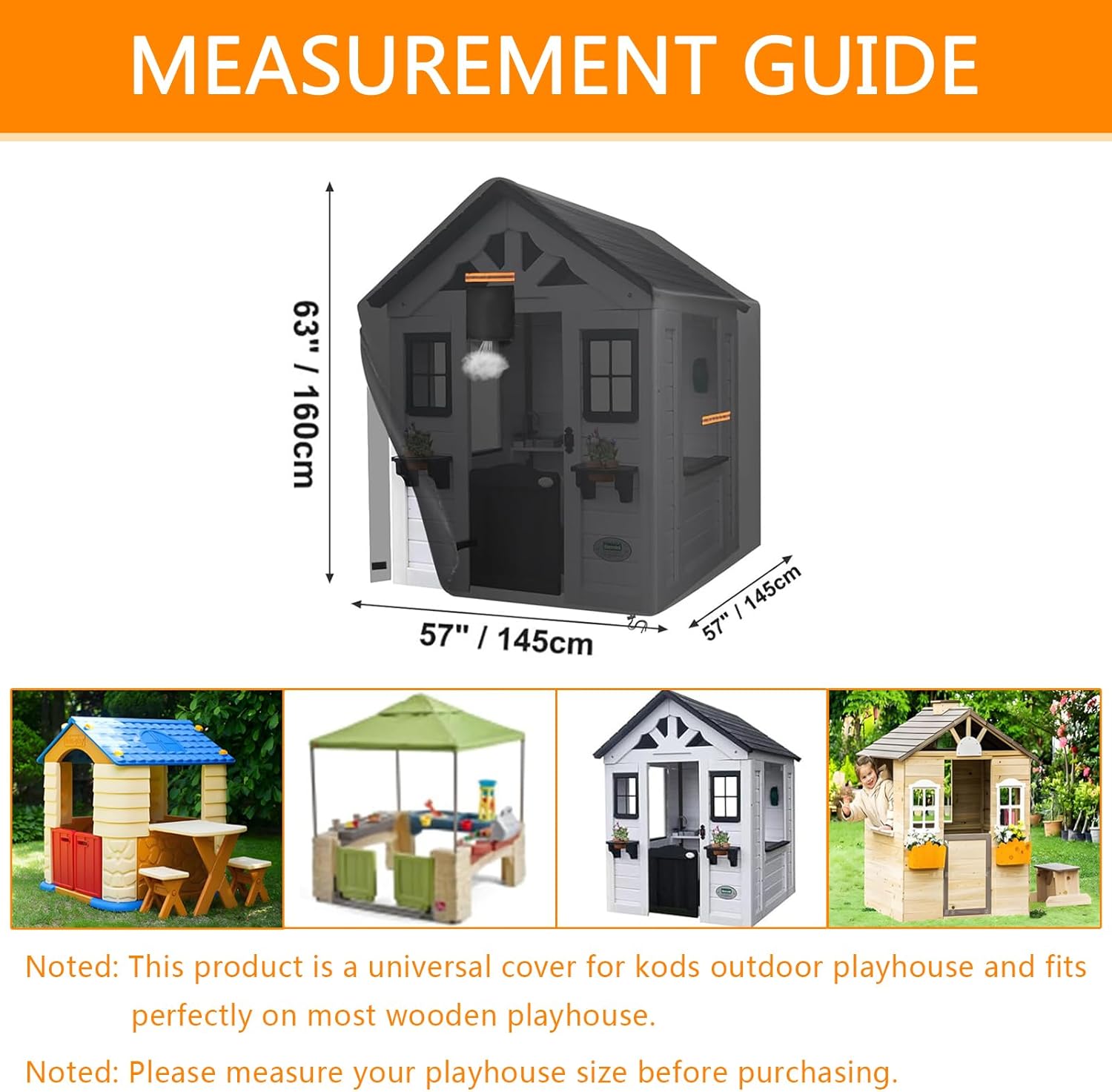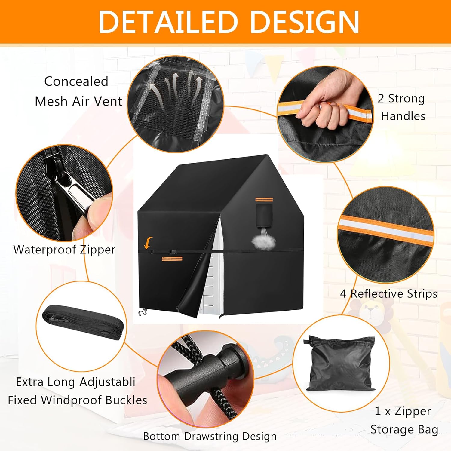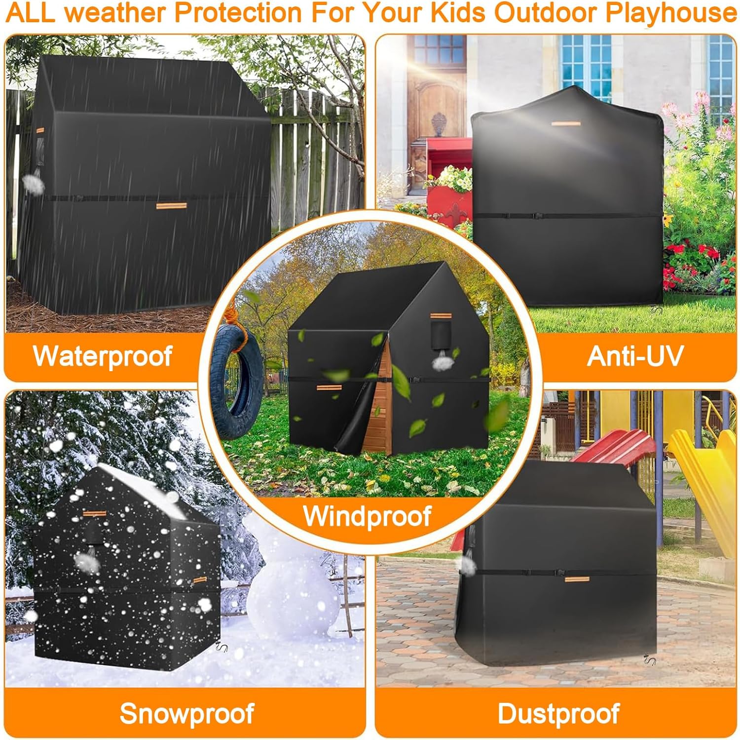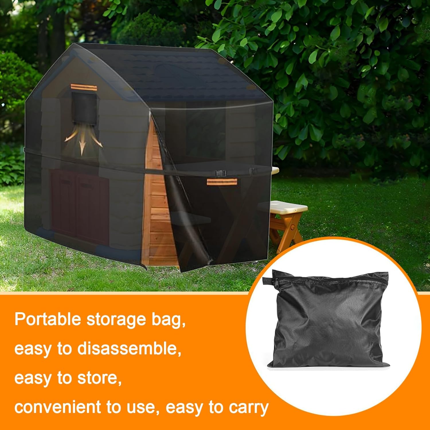 MATERIALI RESISTENTI: questa copertura per casetta da gioco da esterno è realizzata in tessuto Oxford 420D di alta qualità e resistente, con uno strato interno rivestito in argento, che offre eccellenti proprietà impermeabili, resistenza ai raggi UV, resistenza agli strappi e resistenza allo sbiadimento. Queste caratteristiche aiutano la tua casetta da gioco da esterno a resistere alla prova del tempo e agli elementi naturali GUIDA ALLE MISURE: Le dimensioni della copertura impermeabile per casetta da esterno sono: 145 cm di lunghezza × 145 cm di larghezza × 160 cm di altezza. Questa copertura per casetta da esterno è un prodotto universale adatto alla maggior parte dei modelli e delle marche di casette da esterno per bambini. Si prega di fare riferimento alle dimensioni dell'immagine e di misurare le dimensioni della casetta prima dell'acquisto. DESIGN IMPERMEABILE: Le cuciture della copertura impermeabile per casette da gioco in legno da esterno sono doppie e rinforzate con strisce impermeabili, in grado di resistere a una pressione dell'acqua fino a 12.000 millimetri. Questo design protegge efficacemente la tua casetta da gioco da esterno da pioggia, raggi UV, polvere, graffi, escrementi di uccelli e foglie cadute, mantenendola sempre pulita e in ordine. DESIGN ANTIVENTO: La parte inferiore della copertura per casetta da gioco per bambini da esterno presenta un design con coulisse regolabile ed è dotata di cinghie antivento extra lunghe, che garantiscono la sicurezza e la stabilità della copertura anche in condizioni climatiche avverse, come in caso di vento forte. Le aperture di ventilazione mantengono il flusso d'aria, prevengono la formazione di brina e mantengono asciutta la casetta da gioco. FACILE DA USARE: La copertura per casetta da gioco è dotata di una cerniera impermeabile per una facile rimozione e installazione. Anche quando la copertura è chiusa, è possibile accedere facilmente agli oggetti all'interno. Le maniglie su entrambi i lati facilitano la rimozione e l'installazione della copertura per casetta da gioco all'aperto. Quattro strisce riflettenti aiutano a prevenire le collisioni al buio