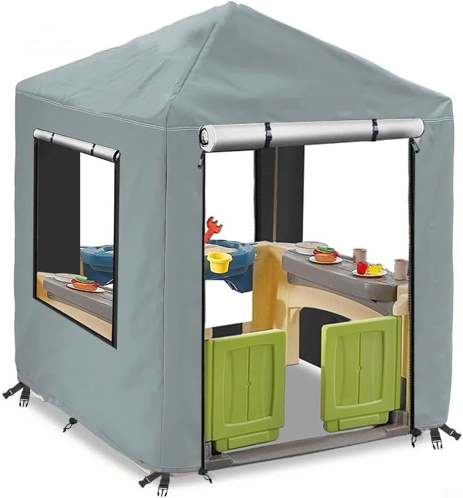 [Protezione esterna affidabile] Realizzata in robusto tessuto Oxford 420D con rivestimento in PU impermeabile, questa copertura è resistente agli strappi e ai raggi UV, offrendo una protezione affidabile contro pioggia e danni del sole per la casetta dei bambini. Dimensioni ottimali: con dimensioni di 142,2 cm di larghezza x 142,2 cm di profondità x 5,1 cm di altezza, si adatta alla maggior parte delle case da gioco di dimensioni standard. Si prega di misurare la casetta prima dell'acquisto per verificare la compatibilità. Comoda accessibilità: questa custodia è dotata di doppie cerniere sulla parte anteriore per un facile accesso; basta arrotolare la parte superiore consentendo ai bambini di sbirciare fuori dalle finestre su tre lati per un divertimento ininterrotto. Robusta resistenza al vento: il design include quattro fibbie e due corde elastiche sul fondo, una vestibilità sicura che può resistere a condizioni di vento senza essere spostato. [Uso duraturo] Costruito per durare in varie condizioni atmosferiche, questa copertura mantiene la tua casetta protetta durante le stagioni, rendendola un'aggiunta essenziale per il divertimento all'aperto.
