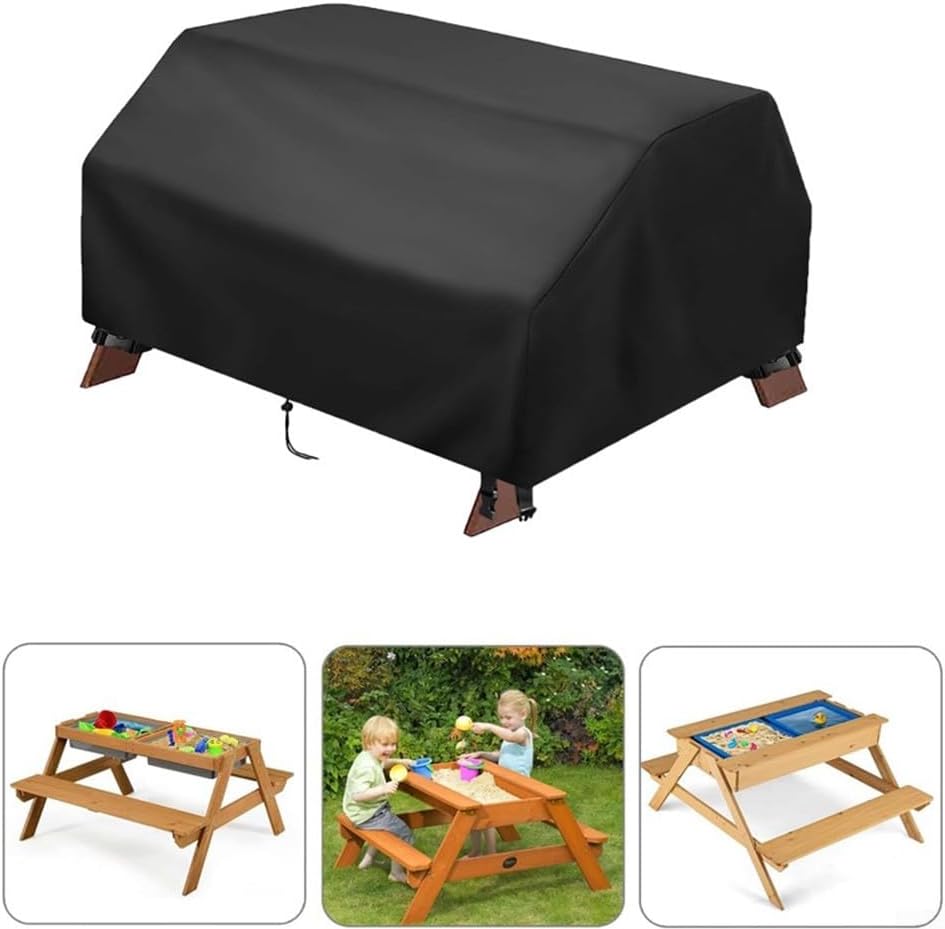 Impermeabile: realizzata in tessuto Oxford 210D di alta qualità, questa copertura per tavolo da picnic per bambini offre un'eccezionale resistenza all'acqua e agli strappi, il tuo tavolo da attività all'aperto 3 in 1 per sabbia e acqua rimane protetto in tutte le condizioni atmosferiche. [Vestibilità sicura in condizioni vento]: progettata con due corde retrattili regolabili e quattro chiusure antivento, la copertura offre una vestibilità aderente che lo mantiene saldamente in posizione, anche in caso di vento forte o tempesta. Design a rete ventilata: due prese d'aria integrate in rete favoriscono il flusso d'aria per ridurre al minimo la condensa e l'accumulo di umidità, contribuendo a mantenere il tavolo da gioco dei bambini pulito, asciutto e pronto per divertenti attività all'aperto. Facile da installare e rimuovere: dotata di due comode maniglie, questa copertura consente un'installazione e una rimozione rapida e senza sforzo, risparmiando tempo ai genitori e rendendo il gioco all'aperto più piacevole per i bambini. [Versatile e compatibilità]: adatto per una vasta gamma di mobili per bambini all'aperto, tra cui tavoli da sabbia e acqua 3 in 1, tavoli da picnic in legno e molto altro ancora, offrendo una protezione impermeabile a tutto tondo per l'area giochi dei tuoi bambini.