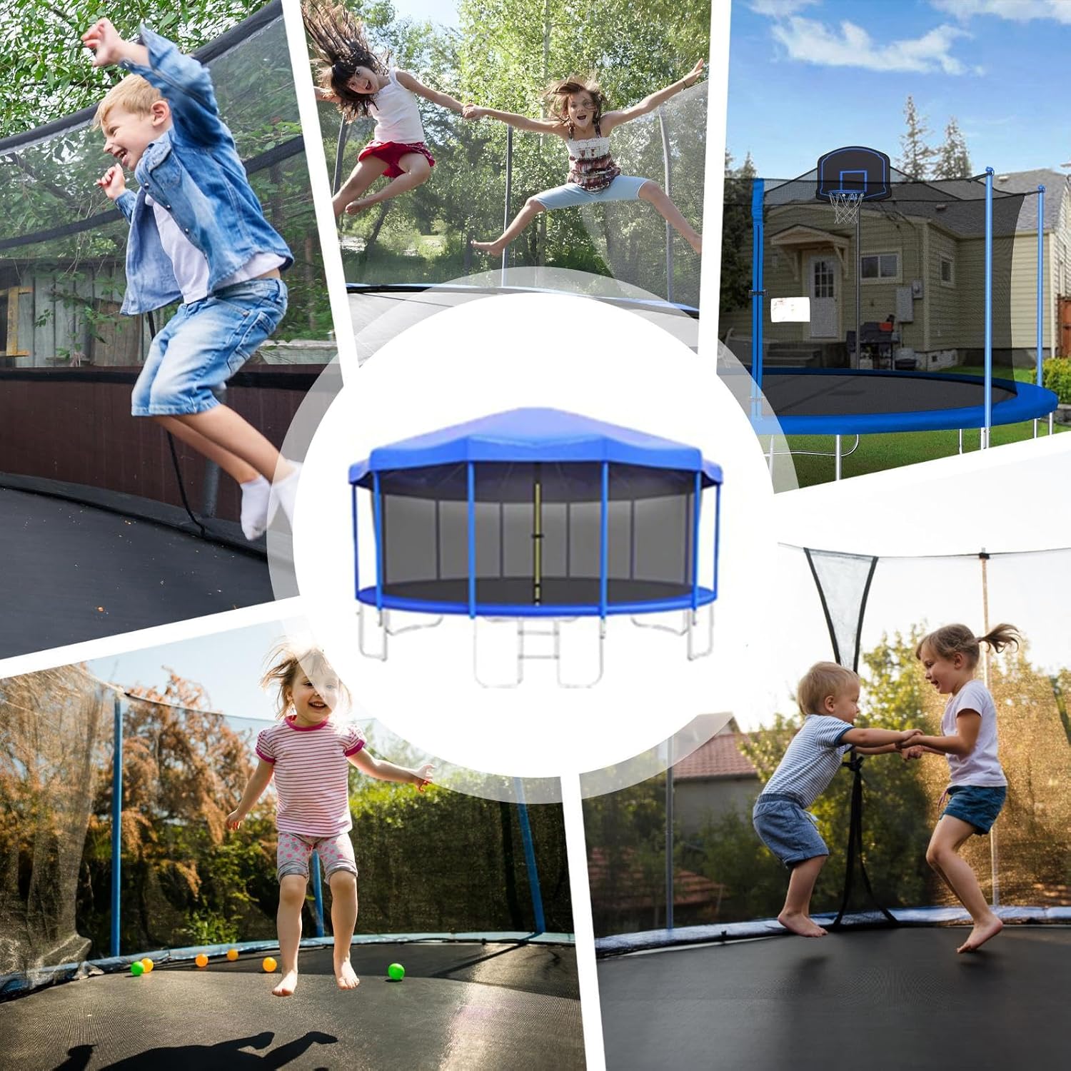 Protezione dagli agenti atmosferici: il tessuto Oxford impermeabile e resistente agli strappi impedisce l'ingresso della pioggia, blocca efficacemente i raggi UV con rivestimento anti-UV, ideale per le estati calde o il clima variabile. OTTIMA VESTIBILITÀ: assicurati che il tuo trampolino sia protetto con la nostra copertura superiore per trampolino. È disponibile in diverse dimensioni e si adatta a trampolini da 6 piedi, 8 piedi, 10 piedi, 12 piedi e 14 piedi. Non devi preoccuparti di problemi di compatibilità, si adatta perfettamente alle dimensioni del tuo trampolino. Installazione sicura: proteggi il tuo trampolino dal vento e dalle intemperie con una copertura superiore fissata saldamente. Dotato di cinghie e fermacavi nella parte inferiore per riporlo facilmente e comodamente. Si piega facilmente per riporlo in modo compatto ed è pronto per l'uso quando necessario. Design multifunzionale: trasforma il tuo trampolino in un santuario ombreggiato per un divertimento senza fine all'aria aperta! Perfetta per feste di compleanno, picnic ed eventi comunitari, la nostra copertura superiore offre un utilizzo versatile per aree giochi interne ed esterne. Protezione a tutto tondo: proteggi il tuo trampolino dalla polvere, prolungando la vita del trampolino mantenendolo asciutto e pulito per garantire una lunga durata.