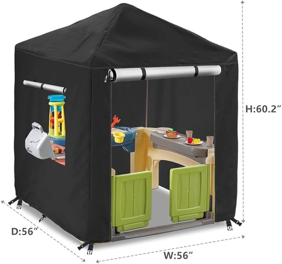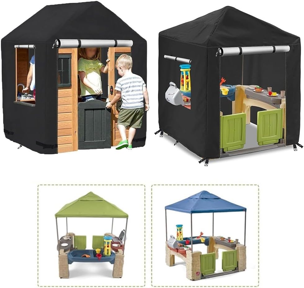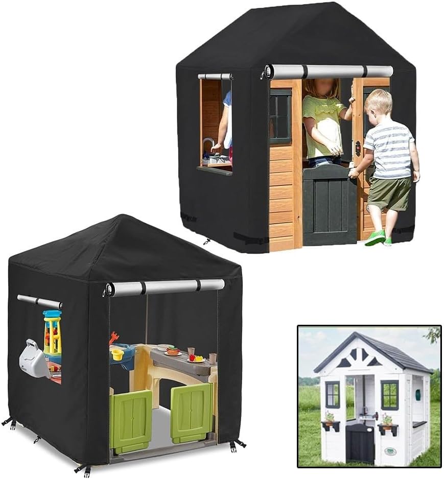 [Protezione dalle intemperie affidabile] Realizzata con materiali impermeabili, questa copertura mantiene la casetta dei bambini asciutta e sicura contro la pioggia tutto l'anno. Protegge dai danni UV: questa copertura protegge la struttura in legno dai dannosi raggi UV, contribuendo a prevenire lo sbiadimento e prolungandone la durata mantenendo un aspetto fresco. Installazione facile da usare: il design intuitivo consente un'installazione e una rimozione semplici senza bisogno di attrezzi, rendendolo senza problemi per i genitori. [Montaggio solido e sicuro] Dotato di cinghie e fibbie regolabili, questa copertura rimane saldamente in posizione anche in caso di vento forte, dandoti tranquillità in caso di tempesta. Compatibile con diverse dimensioni: questa copertura si adatta a vari stili di casette in legno, migliorando l'arredamento esterno garantendo una protezione essenziale.
