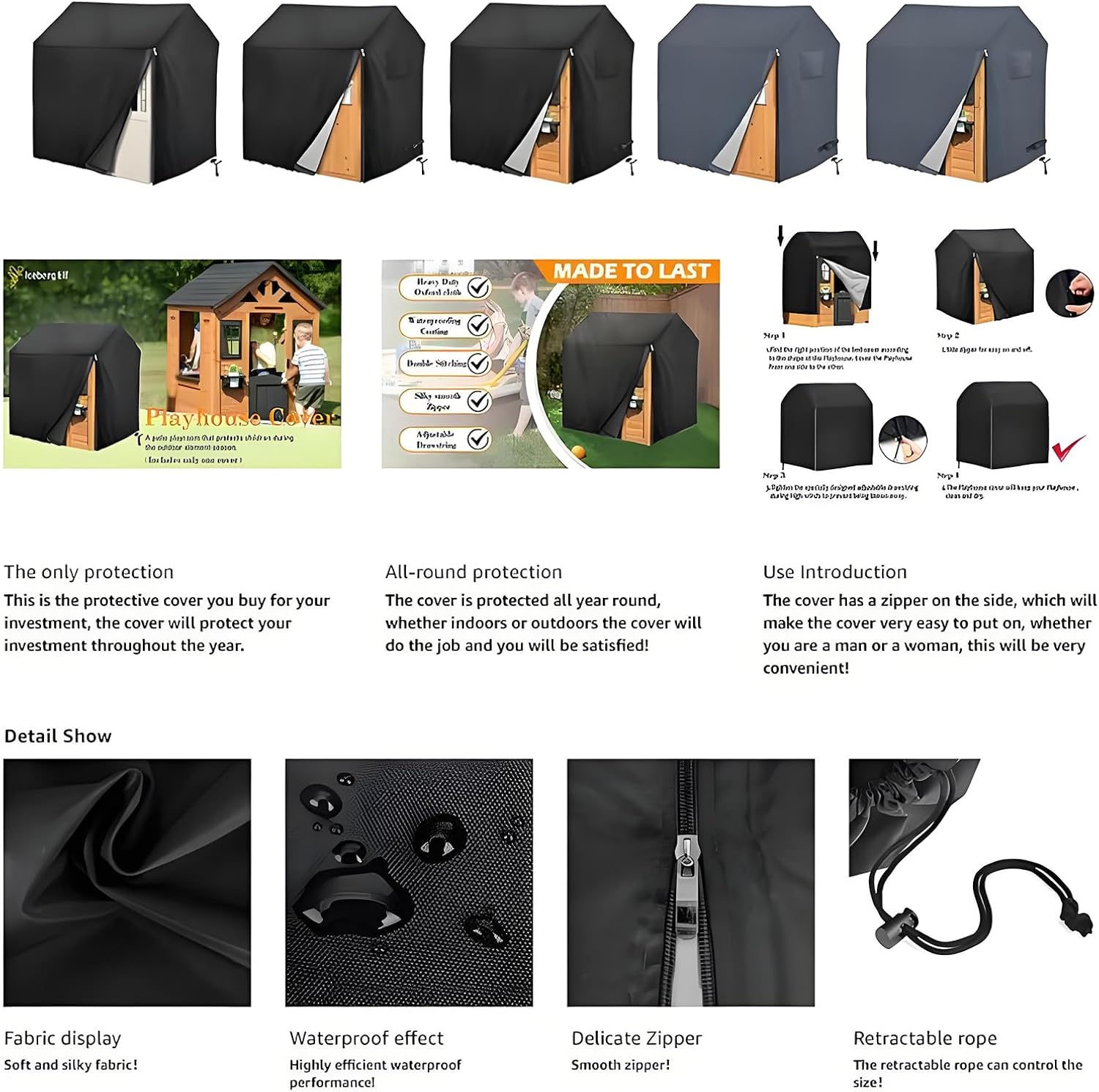 Eccellenza Artigianale: Protezione esterna assicurata da cuciture anti-strappo e costruzione rinforzata, offre affidabilità prolungata con adattabilità stagionale integrale per uso duraturo in ambienti esterni vari Leggerezza: Proteggi la tua casetta dagli elementi con copertura in poliestere 420D potenziata da design impermeabile argentato, offrendo protezione duratura e asciutto affidabile. Montaggio Rapido: Progettato per installazione facile con zip antivento, rimozione immediata, copertura extra-large per schermatura totale, cordino elastico alla base garantisce stabilità Manutenzione Immediata: Design antimacchia con materiali resistenti allo sporco garantisce pulizia rapida e accesso immediato al gioco, integrato da design pieghevole che ottimizza lo spazio senza sforzo per un'esperienza utente semplificata Impermeabilità Efficiente: Barriera contro acqua, UV e polvere con resistenza agli escrementi mantiene la pulizia senza , ottimizzando il libero familiare