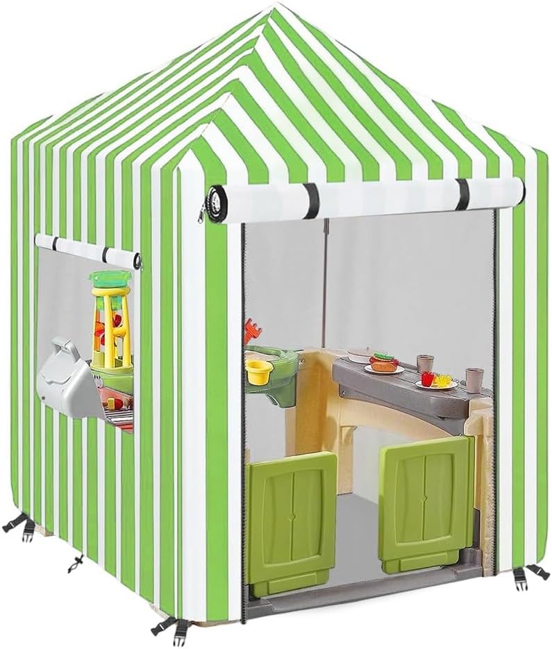 Protezione resistente alle intemperie: mantenete la casetta in legno al sicuro dagli agenti atmosferici con il nostro rivestimento in tessuto Oxford 210D di alta qualità con rivestimento argentato impermeabile. Questa copertura appositamente progettata protegge da pioggia, neve e umidità, prevenendo i danni alla struttura in legno e assicura che i tuoi bambini possano godersi il loro spazio di gioco in tutte le stagioni senza preoccuparsi di deteriorarsi. Protezione solare completa: la nostra copertura per casetta offre una protezione UV superiore che aiuta a prevenire lo sbiadimento e i danni del sole alla tua casetta in legno. Il robusto tessuto Oxford 210D crea un'efficace barriera contro la luce solare intensa, prolungando la durata della tua struttura di gioco all'aperto mantenendo il suo aspetto vivace per anni di divertimento in famiglia. 【Design su misura】: misura 152,9 x 142,2 x 142,2 cm, questa copertura versatile è progettata per adattarsi alla maggior parte delle casette in legno standard per bambini. Dotato di cinghie regolabili e fibbie sicure, fornisce una vestibilità aderente e resistente al vento che rimane saldamente in posizione anche durante il tempo tempestoso, dando ai genitori la tranquillità del loro investimento. 【Installazione semplice】: risparmia tempo e fatica con il nostro design facile da usare che consente una rapida installazione e rimozione senza bisogno di attrezzi. La struttura leggera ma robusta rende facile riporre e proteggere la custodia stagionale per i genitori impegnati, mentre le comode caratteristiche rendono facile fissare la copertura in pochi minuti quando necessario. Opzioni di colore accattivanti: disponibile in blu, giallo, rosa e verde, questa copertura funzionale per casetta aggiunge un tocco di colore al tuo spazio esterno fornendo allo stesso tempo una protezione essenziale. Scegli la tonalità che completa l'estetica del tuo giardino o soddisfa le preferenze dei tuoi bambini per un pratico accessorio che esalta l'aspetto generale del tuo giardino.