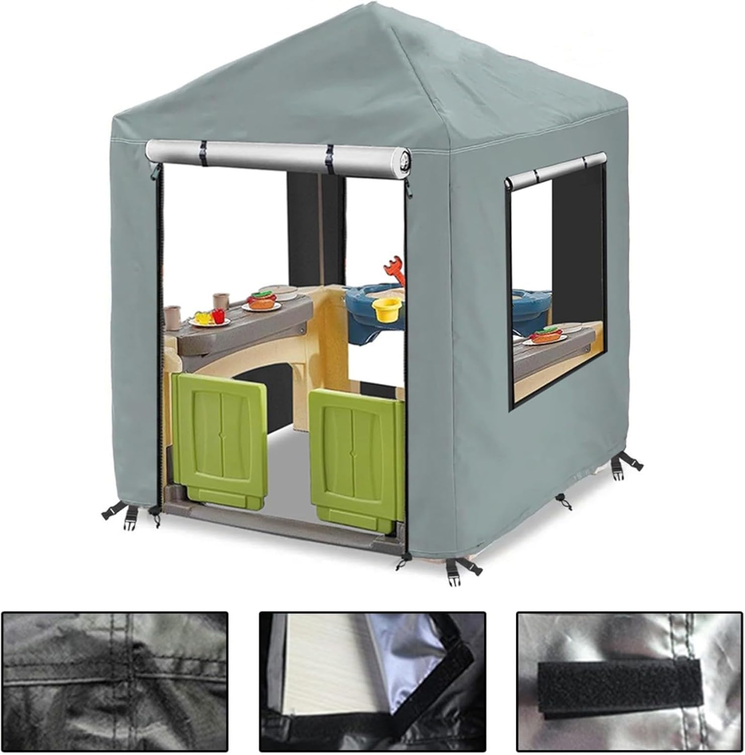 Copertura resistente alle intemperie: realizzata in tessuto Oxford 420D con rivestimento impermeabile in PU, questa copertura è resistente agli strappi e ai raggi UV, la tua casetta rimane al sicuro dalle condizioni meteorologiche avverse e mantiene il suo aspetto fresco più a lungo. Dimensioni generose: misura 142,2 cm di larghezza x 142,2 cm di profondità x 5,1 cm di altezza, questa copertura è compatibile con varie marche di casette della stessa dimensione. Assicurati di misurare attentamente la tua casetta per una vestibilità perfetta. Design di facile accesso: dotata di due robuste cerniere sul davanti, questa copertura consente un rapido accesso alla casetta dei giochi. Arrotolare facilmente la parte anteriore mentre i bambini possono ancora divertirsi a giocare attraverso le finestre su tutti e tre i lati senza rimuovere la copertura. Vestibilità sicura antivento: dotata di quattro fibbie e due corde elastiche sul fondo, questa copertura offre una vestibilità aderente che resiste ai forti venti, mantenendo la tua casetta protetta anche in condizioni di tempesta. Protezione di lunga durata: progettata per resistere a vari elementi esterni, questa copertura assicura che la casetta dei bambini rimanga sicura e protetta tutto l'anno, fornendo tranquillità ai genitori.