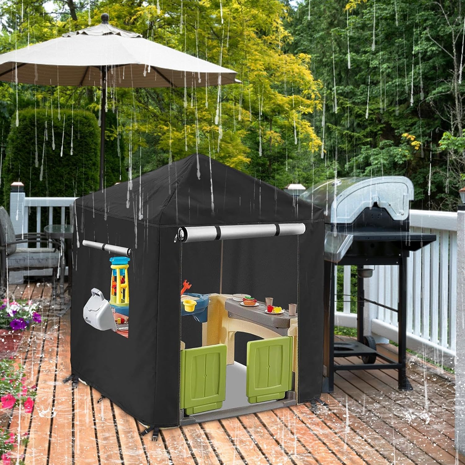 Materiale resistente: realizzata con un resistente tessuto Oxford 420D, la nostra copertura per il teatro offre una protezione completa da sole, pioggia, neve, e polvere. Ottieni un'eccellente difesa resistente alle intemperie, all'acqua, ai raggi UV e strappo Protezione completa: mantieni la casetta dei tuoi bambini al sicuro in tutte le stagioni con questa copertura appositamente progettata, progettata per casette all'aperto e che fornisce una copertura tutto l'anno Organizzazione senza sforzo: senza più preoccupazioni per lo spazio di archiviazione per la copertura della casetta dei giochi per bambini all'aperto. Facile da piegare e riporre, ti fa risparmiare problemi ed è ottimo per la pulizia quotidiana, garantendo una comoda organizzazione e protezione Design anti: entra ed esci facilmente dalla casetta da gioco all'aperto con 2 robuste cerniere sulla parte anteriore e una copertura avvolgibile fissata con nastro adesivo. Inoltre, il design anticonsente comode regolazioni per adattarsi alla casetta in legno di qualsiasi bambino Facile da usare: grazie alla cerniera laterale, la nostra copertura per casetta da gioco per bambini da esterno è facile da usare e mantenere. Impedisce l'ingresso di polvere, detriti e altri contaminanti, rendendolo un modo conveniente per proteggere la tua casetta