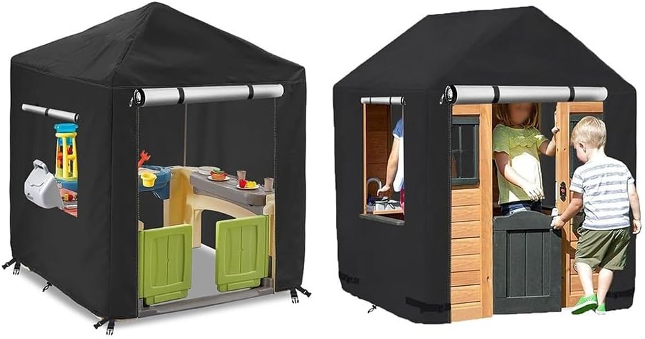 * Resistenza agli agenti atmosferici: questa copertura per casetta è realizzata con materiali impermeabili che forniscono un'eccellente protezione contro pioggia e umidità, rendendo la casetta dei bambini asciutta e sicura per l'uso tutto l'anno. * Protezione solare: progettata per proteggere la casetta dai dannosi raggi UV, questa copertura aiuta a prevenire lo sbiadimento e danni alla struttura in legno, prolungandone la durata e mantenendo un aspetto vivace. * Facile installazione: la cover presenta un design facile da usare che consente un'installazione rapida e senza problemi, per i genitori da installare e rimuovere secondo necessità senza attrezzi. * Vestibilità sicura: dotata di cinghie regolabili e fibbie, questa copertura garantisce una perfetta aderenza alla casetta dei giochi, impedisce che venga spazzata via da forti venti e fornisce tranquillità durante le tempeste. * Uso versatile: adatto per varie dimensioni e stili di casette in legno, questa copertura non solo protegge, ma migliora anche l'aspetto generale del tuo spazio esterno, rendendolo un'aggiunta pratica e attraente.