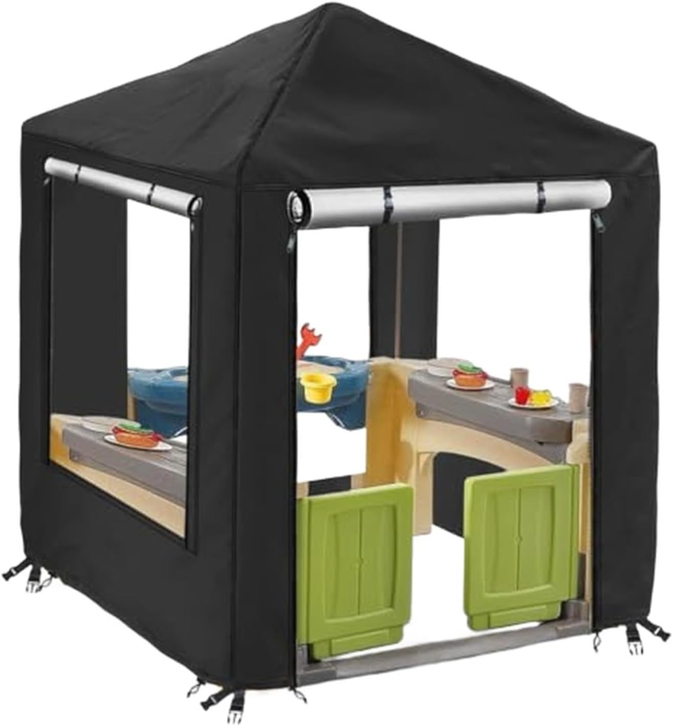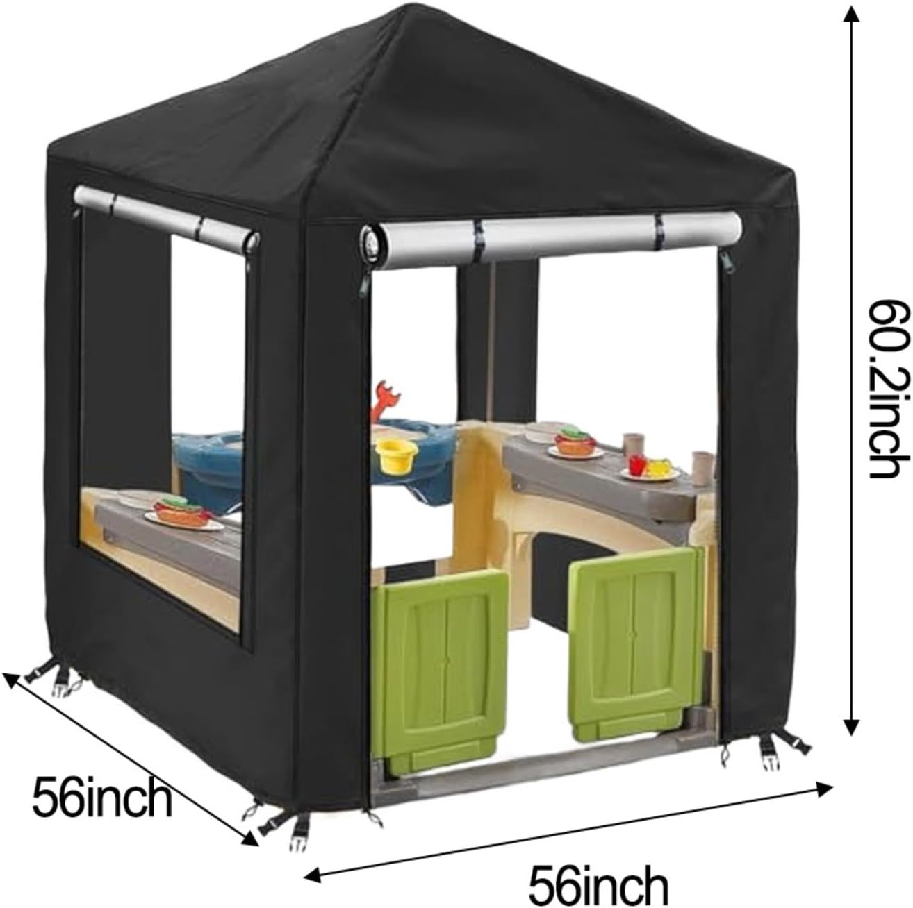 [Protezione dalle intemperie] Realizzato in resistente tessuto Oxford 210D con rivestimento impermeabile in PU, protegge efficacemente da pioggia e altri elementi atmosferici per prolungare la vita della tua casetta dei giochi. Comodo accesso: con due robuste cerniere impermeabili sul davanti, l'accesso alla casetta è facile; inoltre, le finestre su tre lati migliorano la visibilità e il flusso d'aria. Vestibilità sicura: progettato con quattro bottoni a pressione e due corde elastiche alla base per un fissaggio sicuro anche in condizioni di vento, mantenendo la tua casetta al sicuro. [Esperienza di gioco migliorata] Questa copertura realizzata con cura non solo protegge, ma arricchisce anche il tempo di gioco dei bambini mantenendo un'atmosfera invitante ben illuminata e ventilata.