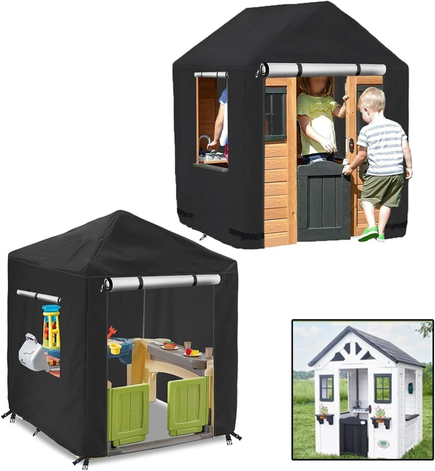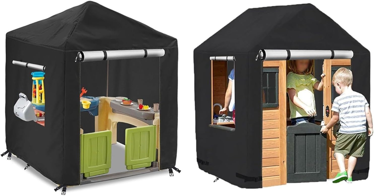 Protezione resistente alle intemperie: realizzata con materiali impermeabili, questa copertura per casetta mantiene l'area giochi dei tuoi bambini asciutta e sicura tutto l'anno, rendendo un divertimento infinito indipendentemente dal tempo. Protezione solare: progettata per proteggere dai dannosi raggi UV, questa copertura aiuta a prevenire lo sbiadimento e i danni alla tua casetta in legno, preservando il suo aspetto vibrante più a lungo. Facile installazione: dotata di un design facile da usare, questa copertura consente una rapida installazione e rimozione senza attrezzi, rendendolo comodo per i genitori impegnati. Vestibilità sicura: dotata di cinghie e fibbie regolabili, questa copertura garantisce una perfetta aderenza su varie dimensioni della casetta dei giochi, fornendo tranquillità in condizioni di vento. Migliora lo spazio esterno: adatta per diversi stili di casette in legno, questa copertura non solo protegge, ma aggiunge anche un elemento attraente alla tua area esterna.