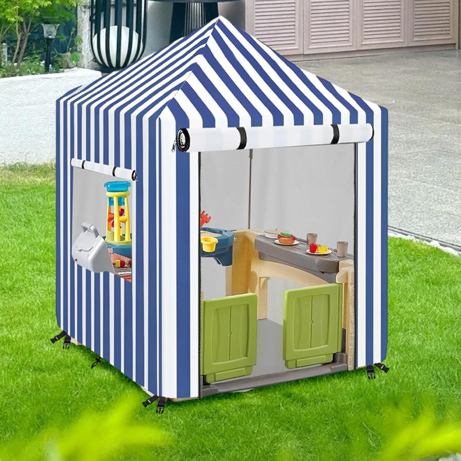 [Protezione dalla pioggia e dal sole] Copertura per casetta realizzata con materiali impermeabili, questa copertura per casetta protegge efficacemente l'area giochi dei tuoi bambini dalla pioggia mentre i danni del sole per mantenere i suoi colori vivaci. Lunga durata: la copertura aiuta a prolungare la durata della tua casetta in legno proteggendola da elementi ambientali come umidità e raggi UV. Facile installazione senza attrezzi: progettata pensando alla comodità, questa copertura può essere installata o rimossa senza sforzo senza bisogno di attrezzi, risparmiando tempo e fatica. Sistema di cinghie regolabili: dotato di cinghie e fibbie regolabili, questa copertura garantisce una vestibilità sicura che resiste alle condizioni ventose, mantenendo l'area giochi del bambino protetta. Si adatta a più dimensioni della casetta dei giochi: compatibile con vari stili di case da gioco in legno, questa copertura protettiva è sia pratica che visivamente accattivante per il tuo giardino.
