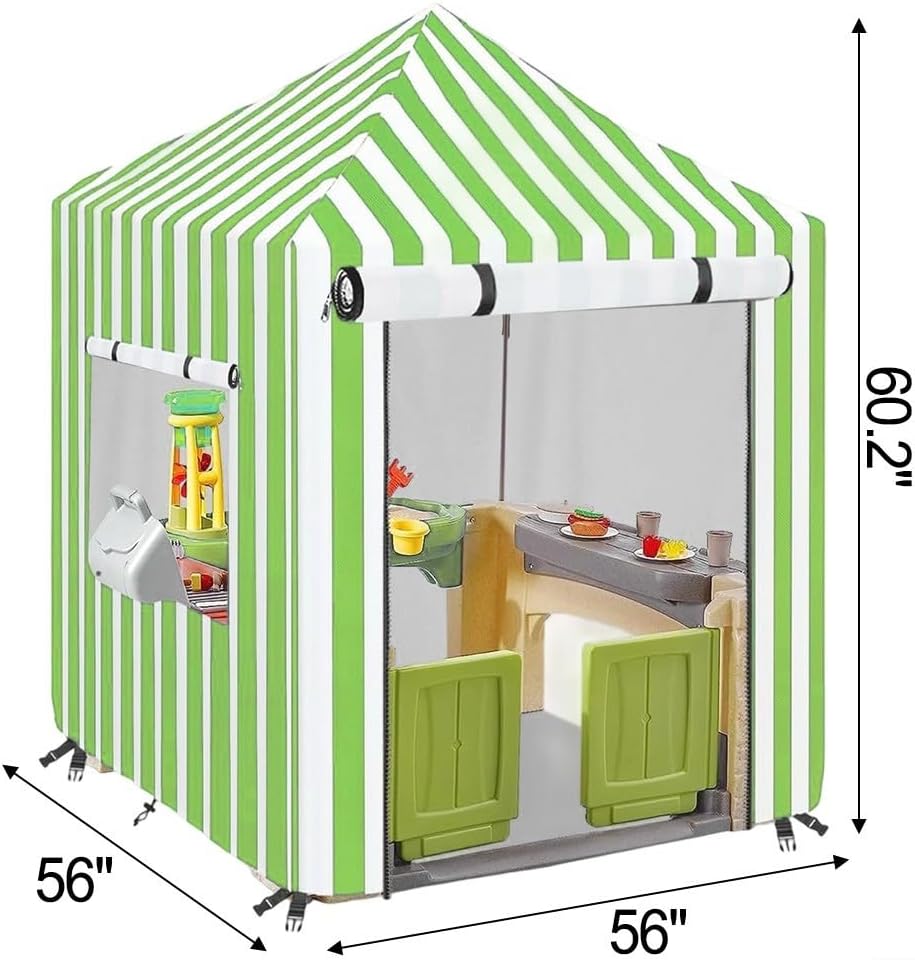 Protezione resistente alle intemperie: la nostra copertura per casetta protegge la struttura esterna dei tuoi bambini da pioggia ed elementi aggressivi con tecnologia di rivestimento in argento impermeabile 210D, mantenendo l'area giochi asciutta e protetta dai danni causati dall'umidità per tutte le stagioni. Tecnologia di protezione solare: questa copertura protettiva blocca efficacemente i dannosi raggi UV, lo sbiadimento dei colori e il deterioramento del legno della casetta dei bambini mantenendo il suo aspetto attraente per lunghi periodi. Sistema di installazione rapida: caratterizzato da un design facile da usare che non richiede attrezzi, questa copertura per casetta può essere installata o rimossa in pochi minuti, risparmiando ai genitori impegnati momenti preziosi fornendo una protezione costante per il tuo investimento di gioco all'aperto. Design sicuro e resistente al vento: dotato di cinghie regolabili e fibbie robuste, questa copertura rimane saldamente in posizione anche in caso di vento forte, offrendo ai genitori la tranquillità della casa dei giochi dei loro bambini rimane saldamente protetta durante le intemperie imprevedibili. Dimensioni versatili per strutture multiple: misura 152,9 x 142,2 x 142,2 cm, questa copertura adattabile si adatta a vari disegni di casette in legno ed è disponibile in quattro colori vivaci (blu, giallo, rosa, verde) per completare la tua estetica esterna offrendo protezione tutto l'anno.