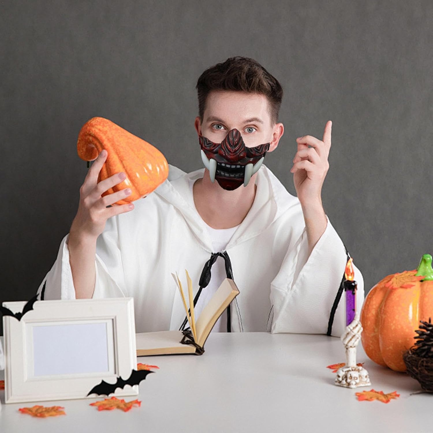 Design unico: realizzata appositamente con un design unico caratterizzato da espressioni e zanne feroci, questa copertura per il viso è il tuo biglietto per diventare il centro 'attenzione a festa, assicurando un'indimenticabile notte di spavento. Superba maestria: dotata di zanne realistiche, la nostra copertura per il viso è realizzata con materiali in resina di alta qualità per una consistenza forte e duratura. Dettagliato con colori ricchi e vivaci, migliora l'impatto visivo e fornisce un eccellente realismo. Indossalo senza preoccupazioni poiché può resistere all'usura a lungo termine. Sensazione morbida e confortevole: la nostra copertura per il viso con zanne di Halloween ti delizia con materiale non irritante e delicato sulla pelle e strato di riempimento in morbida spugna incorporato. Goditi la festa spettrale e indossalo per ore rimanendo comodamente al sicuro. Vestibilità ideale: realizzata con dimensioni moderate, questa copertura per il viso con zanne cosplay di Halloween si adatta alla maggior parte dei contorni del viso degli adulti. Non è né troppo stretto né troppo largo, garantendo prestazioni confortevoli durante il gioco di ruolo e un effetto impeccabile. Espressione e interazione migliorate: la nostra copertura per metà viso con zanne offre visione senza ostacoli e libertà di movimento a parte superiore del viso, consentendoti di connetterti facilmente con gli altri. Il suo design a mezza copertina migliora l'interazione, rendendo le espressioni più vivide e riconoscibili.