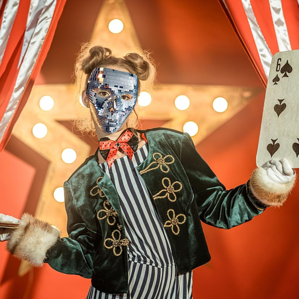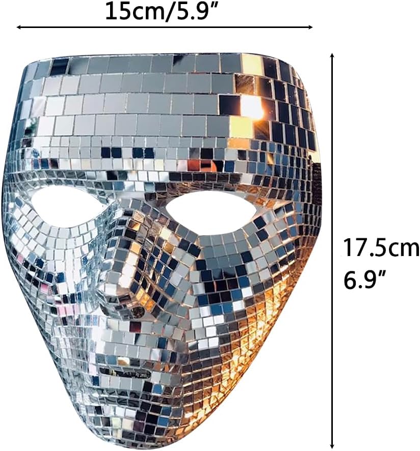 Design unico: copertura per il viso a full da discoteca per adulti che sembra incredibile alla luce del sole, alla luce. Ai festival di Rave Party, natalizi e festival in maschera, sarai tra la folla con una copertura luccicante e diventerai immediatamente il centro dell'attenzione. Materiale premium: realizzato in PVC e lenti, questa visiera è morbida, leggera, resistente e traspirante, leggera e confortevole da indossare, riutilizzabile e lavabile, dando un effetto decorativo durevole, quando non in uso, può essere lavato con acqua, conservare in un luogo fresco dopo essiccarsi. Non indossare durante l'allenamento, il bagno o il sonno. Artigianato a mano: le coperture per il viso lucido sono accuratamente preparate e modificate, vetro a specchio, materiali premium aggiunti, molto chic. Gli abiti unici e nuovi aggiungono anche l'umore festivo, rilassato e confortevole, sarà il tuo incontro più speciale. Ampie applicazioni: con la lucentezza di vere piastrelle di vetro, la copertura del viso lucida ti rende più attraente e attraente, un ottimo per gli amanti della discoteca. Scelta perfetta per i regali: queste copertine di vetro a specchio creativo sono un ottimo per qualsiasi compleanno, festa, vacanze o qualsiasi occasione speciale. L'amante di tua moglie adorerà questa copertura luccicante.