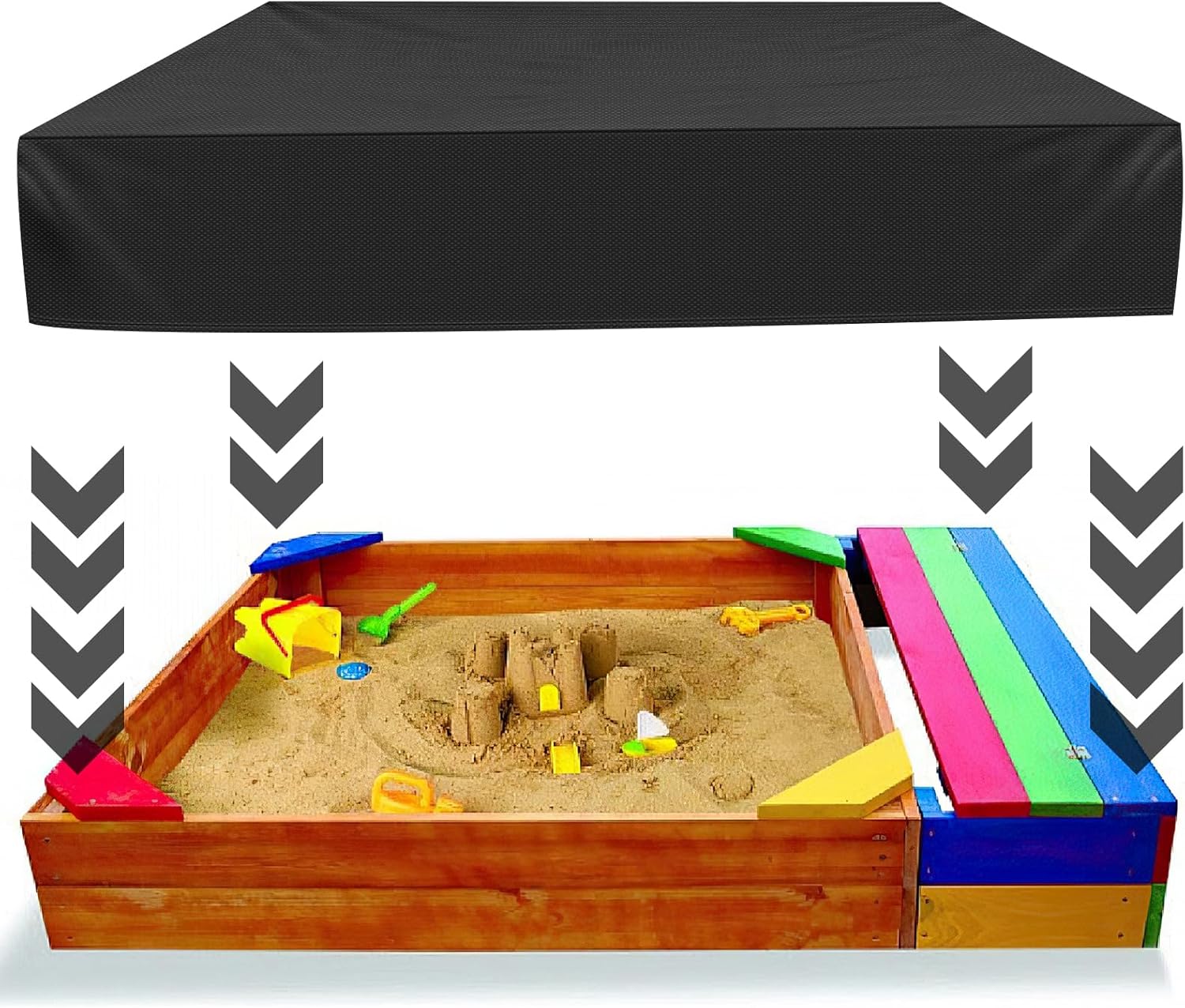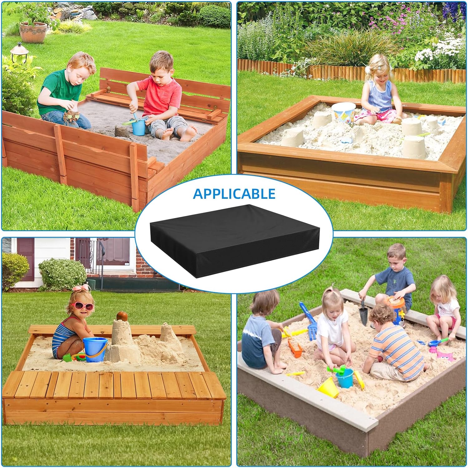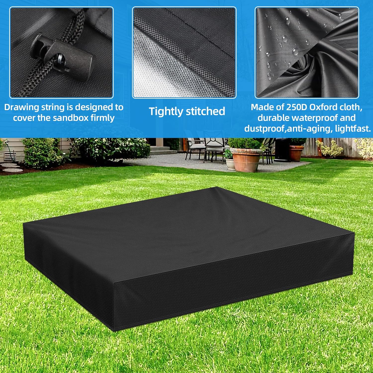 Materiale: questa copertura per sabbiera è realizzata in tessuto Oxford resistente e impermeabile ed è combinata con un rivestimento in PVC impermeabile per garantire un'eccellente resistenza alla polvere e all'acqua. Allo stesso tempo, grazie al suo odore privo di sostanze chimiche, è più tollerante nei confronti del corpo umano e dell'ambiente e può essere utilizzato a lungo senza timore di problemi di salute. Gli utenti devono confermare la taglia prima dell'acquisto per assicurarsi che sia adatta. Pratico e protettivo: la funzione principale della copertura della sabbiera è quella di proteggere la sabbia e i giocattoli dagli agenti esterni come sporco, pioggia e polvere. Utilizzando questa copertura per sabbiera, puoi isolare efficacemente queste potenziali fonti di inquinamento, mantenere l'interno della sabbiera pulito e igienico e anche impedire agli animali domestici di entrare nella sabbiera e causare inquinamento. Comodo design con coulisse: la copertura della sabbiera è dotata di coulisse e corda. Gli utenti possono facilmente stringere e fissare la copertura per garantire che la copertura della sandbox possa coprire saldamente la sandbox, fornendo una protezione più completa. Facile da riporre e pulire: questa copertura per sabbiera è progettata per essere facile da usare e si ripiega e si ripone facilmente nella scatola per risparmiare spazio. Anche la pulizia è molto semplice, basta pulire con un panno umido, non sono necessarie complicate operazioni di pulizia. Ampia applicazione: questo prodotto può essere utilizzato non solo come copertura per la sabbiera, ma anche come copertura protettiva per mobili per evitare che i mobili siano esposti ad alte temperature e condizioni atmosferiche avverse. Allo stesso tempo, la sua versatilità si riflette anche nel fatto che può essere utilizzata come copertura per piscina da giardino per evitare che foglie cadute, insetti e altri corpi estranei cadano nell'acqua e per mantenere l'acqua pulita. Inoltre, è ideale per i giochi da spiaggia all'aperto grazie alla sua durata e resistenza all'acqua.