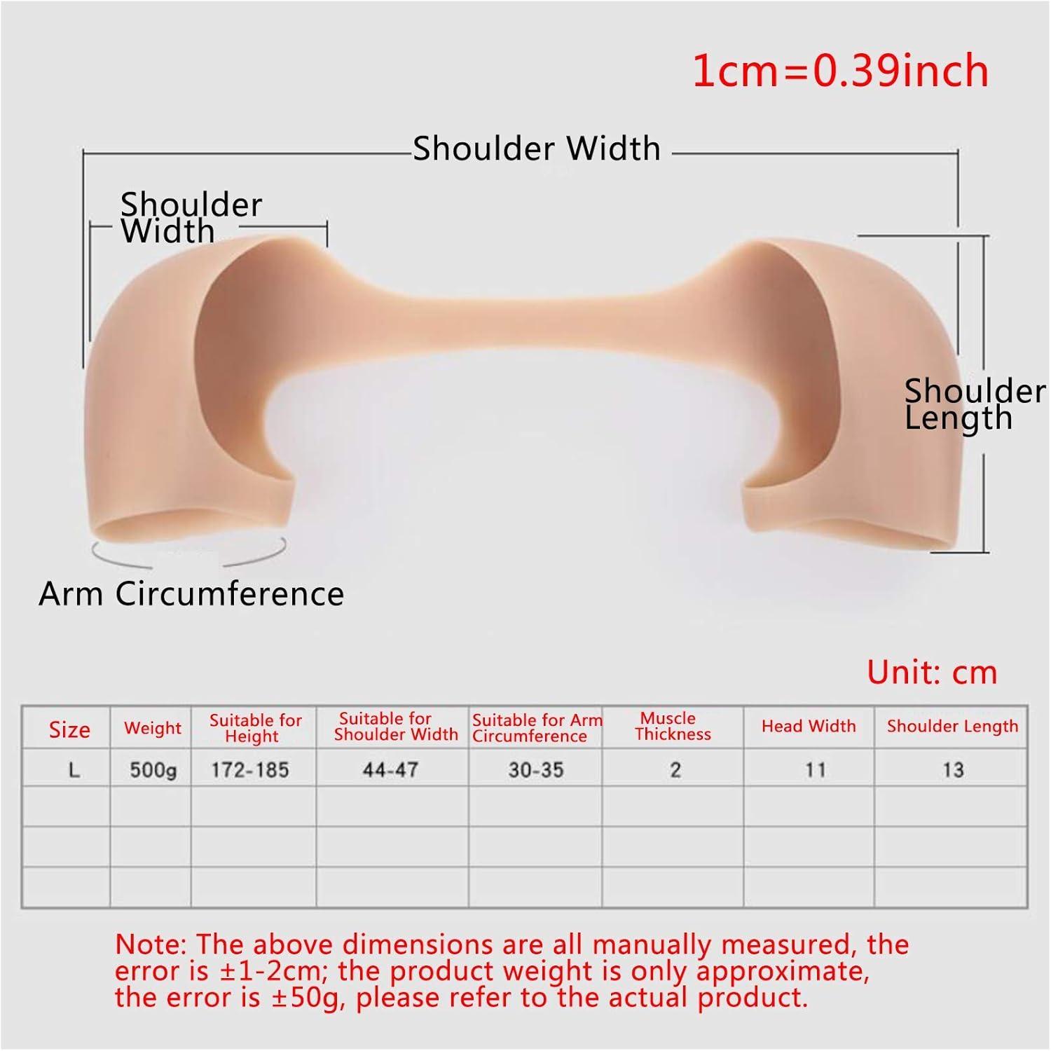 Copertura per spalle in silicone: triangolo invertito e design del fascio centrale del muscolo deltoide bionico, adatto per spalle scorrevoli, spalle strette, puntelli modellanti del corpo. Materiale: 100% silicone per uso alimentare, atossico, inodore, è più morbido ed elastico rispetto ai tradizionali materiali in silicone, rendendolo simile alla pelle umana. Anche se indossato per un lungo periodo, non è troppo stanco, non sentirsi stanco. Effetto ovvio: basta mettere questa copertura per le spalle in silicone maschile sotto il vestito o la camicia, quindi alzarsi immediatamente e svolgere il tuo ruolo, mostrandoti alcuni affascinanti shouldermuscles. [Alta elasticità] - Polsini elastici, elastici 15-20 cm, ripetuti strappi senza deformazioni. Quindi è più facile da indossare. Ampia applicazione: crossdresser, transgender, travestito, cosplay, ladyboy, attore, scattare foto, feste, persino sposarsi, ecc.