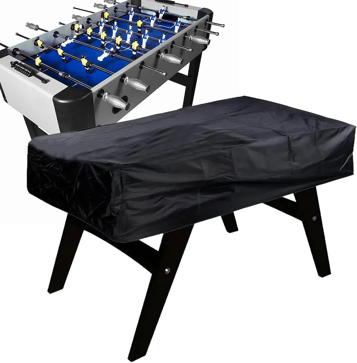 Orlo elastico: proteggi il tuo tavolo da calcio con la nostra copertura dagli elementi ruvidi senza problemi. Il suo design elastico dell'orlo funziona con la trave, mentre un cavo elastico regolabile garantisce una vestibilità sicura e aderente. Niente più problemi da indossare o togliere! Protezione resistente alle intemperie: questa copertura per tavolo da calcio è realizzata in tessuto di poliestere leggero e di alta qualità e ha cuciture laterali rinforzate per evitare strappi. È resistente e può resistere a qualsiasi condizione atmosferica. Massima stabilità: la nostra copertura per tavolo da calcio offre fibbie su tutte e 4 le gambe per prestazioni antivento imbattibili. Goditi un gioco stabile e non preoccuparti mai dei forti venti che causano il caos della tua configurazione. Resistenza all'acqua superiore: hai il tuo tavolo da calcio contro i danni causati dall'acqua con un doppio rivestimento impermeabile nella nostra copertura per tavolo da calcio. Ottieni la protezione completa per l'uso in interni ed esterni e mantieni il tuo investimento sicuro e asciutto. Massima copertura: assicurati che il tuo tavolo da calcio rimanga protetto con la nostra copertura per tavolo da calcio. Proteggerlo perfettamente dalla luce del sole, dalle perdite improvvise, dal vento e dalla polvere, evitando che macchie e peli si accumulino sulla sua superficie.