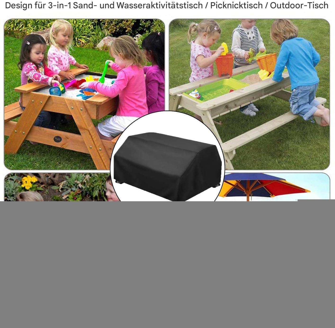 Durevole e robusta: tovaglia da picnic resistente agli strappi e all'abrasione realizzata in tessuto Oxford rinforzato a doppio strato ad alta densità con rivestimento impermeabile e protettivo dai raggi UV. Protegge efficacemente dalla pioggia e dai danni del sole, prolunga la durata per uso esterno. Portatile e adatto ai genitori: progettato per famiglie attive: consente una movimentazione rapida e uno stoccaggio salvaspazio piegandolo in piano: portabilità ottimale e risparmio di spazio durante i viaggi. Copertura per tutte le stagioni: progettata per campeggio, giardini e scuole. Vestibilità ottimale per tavoli con sabbia, acqua e sensoriali. Garantisce un'efficace protezione da polvere, sole e schizzi per una comprovata idoneità a tutte le condizioni atmosferiche in tutte le stagioni Robusta copertura per esterni: questa resistente copertura per tavolo è ideale per tavoli con ombrelloni. Offre una buona protezione da pioggia, polvere e raggi UV e mantiene sicura l'area giochi dei bambini durante le attività all'aperto. Ben progettato per essere stabile al vento: il robusto sistema di fibbie combinato con le cinghie di tensione regolabili offre un'eccellente resistenza al vento. La copertura del tavolo viene immediatamente fissata in modo sicuro e rimane tale senza continue regolazioni.