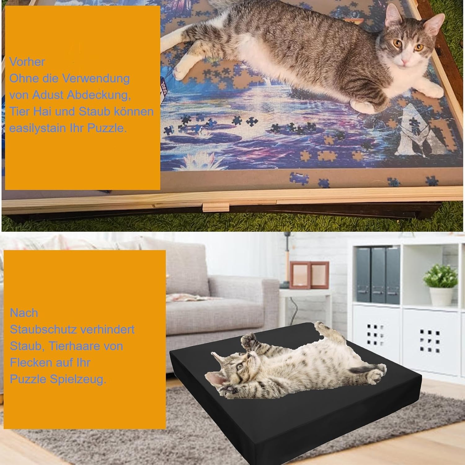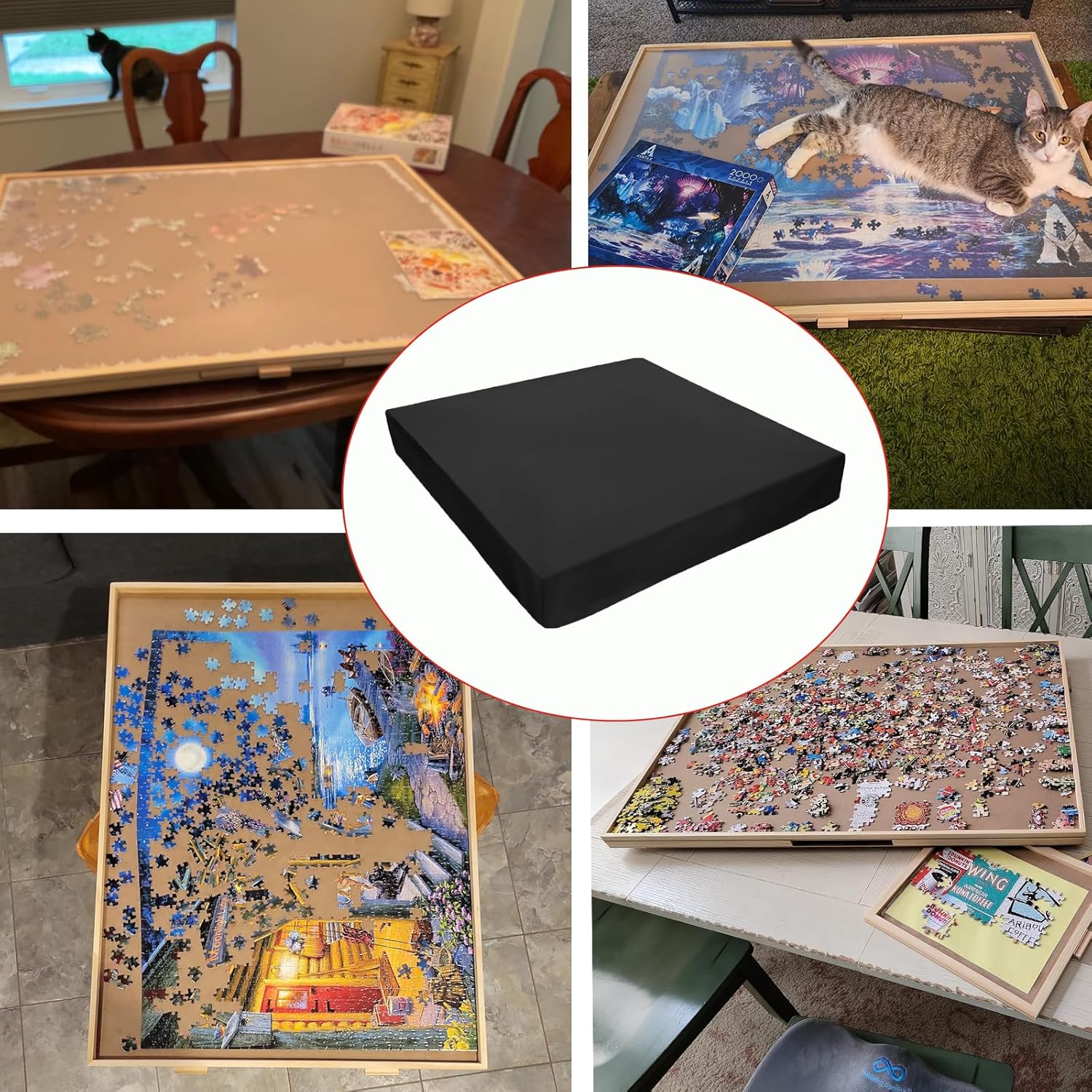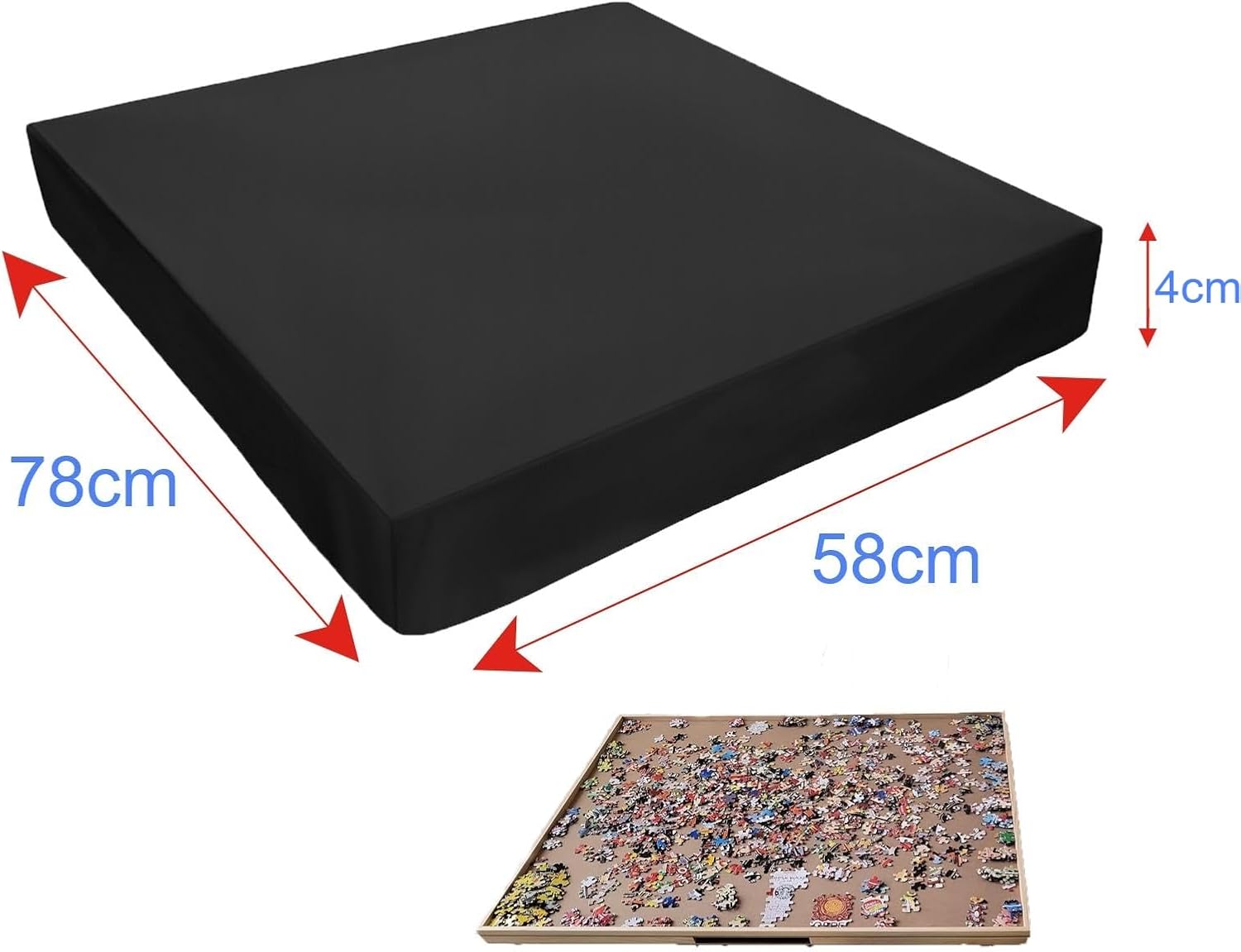 Dimensioni: 78 x 58 x 4 cm. Adatto per la maggior parte dei tavoli puzzle da 1000 pezzi sul mercato. Si prega di verificare le dimensioni del tavolo puzzle prima dell'acquisto. Forniamo solo coperture per puzzle e non tavoli puzzle. Materiale di alta qualità: la copertura per tavolo puzzle è realizzata in tessuto Oxford 420D, impermeabile, antipolvere e protezione solare, mantenendo il tuo tavolo puzzle asciutto e pulito. Design anti-smarrimento: la parte inferiore della copertura del tavolo del puzzle ha una fascia elastica che si adatta saldamente e avvolge il tavolo del puzzle, evitando la perdita dei pezzi del puzzle. Facile da usare: basta posizionare la copertura del tavolo del puzzle sul tavolo del puzzle e renderla facile da usare. FACILE DA PULIRE Il rivestimento nero impermeabile e antipolvere ha una superficie resistente allo sporco ed è facile da pulire.