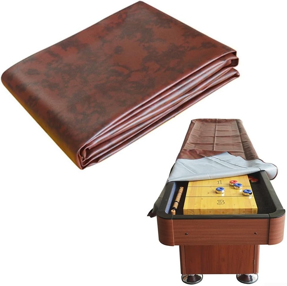 Protezione superiore del tavolo: proteggi il tuo tavolo shuffleboard da polvere, fuoriuscite e animali domestici quotidiani con questa copertura sapientemente realizzata che lo mantiene pulito e pronto per giocare in ogni momento. [Materiali di costruzione robusti] Caratterizzata da una pesante pelle sintetica completata da una morbida fodera in cotone, questa copertura offre una protezione robusta mentre sta benissimo in qualsiasi ambiente. [Design aderente per una copertura completa] Il design aderente non solo protegge il lato superiore del gioco, ma avvolge anche i grembiuli da tavolo comodamente; le doppie cuciture rinforzate offrono una lunga durata. Manutenzione semplificata: per mantenere la copertura al meglio, spolverarla regolarmente con un panno asciutto. tutta la cera viene rimossa dal tavolo prima di applicare la copertura per evitare danni.