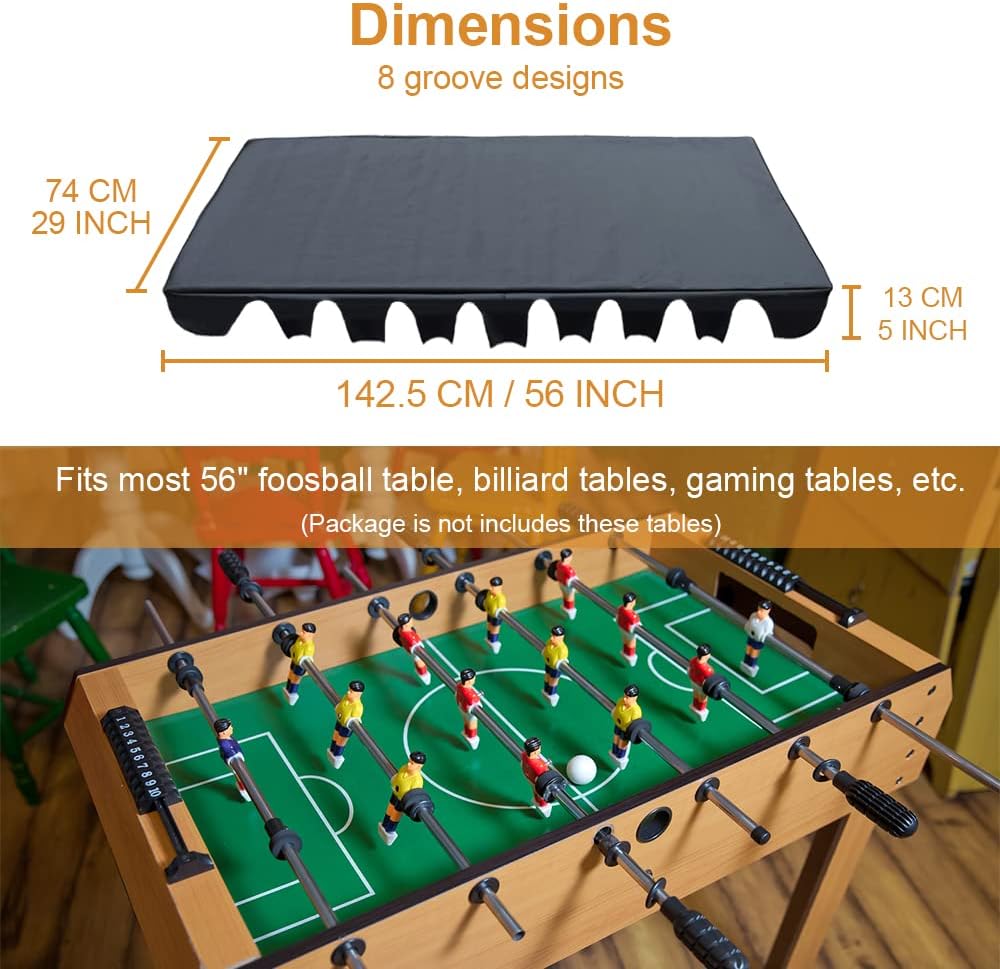 Impermeabile e resistente: realizzato in tessuto poliestere 210D. Proteggi il tuo calcio balilla da acqua, polvere e luce solare. Tavolo non incluso. Dimensioni: 160 x 114,3 x 48,3 cm. Si adatta alla maggior parte dei tavoli da biliardo, tavoli da gioco, ecc. da 63 pollici. Fornisce una copertura completa per il tavolo da biliardo, le altre coperture coprono solo la metà, la polvere si accumula sotto il tavolo, la nostra può impedire alla polvere di entrare sotto il tavolo. Coulisse regolabile per fissare la copertura in caso di vento, non preoccuparti dell'impatto del vento. Accessori perfetti per la protezione esterna: può abbinarsi a quasi tutte le decorazioni della tavola. Adatto per uso esterno ed interno.