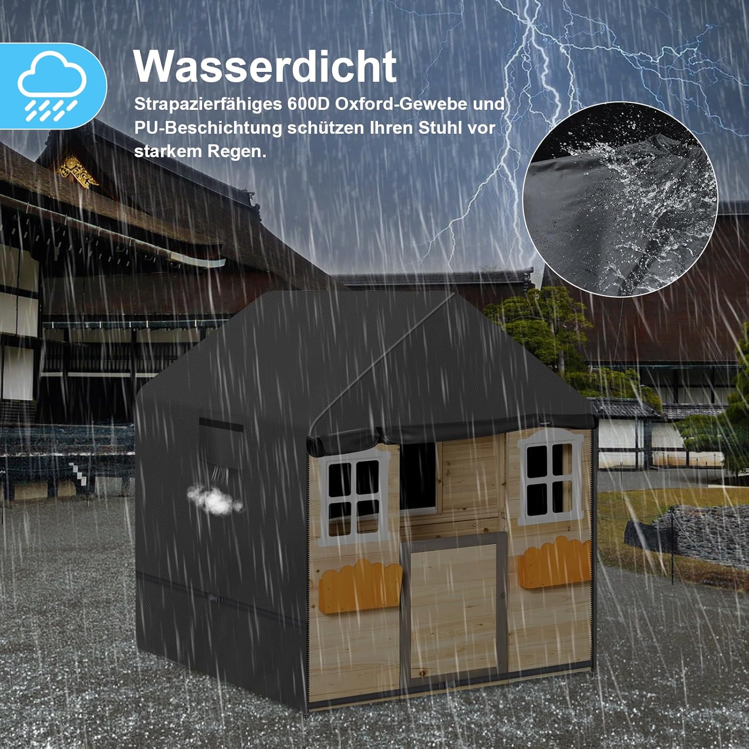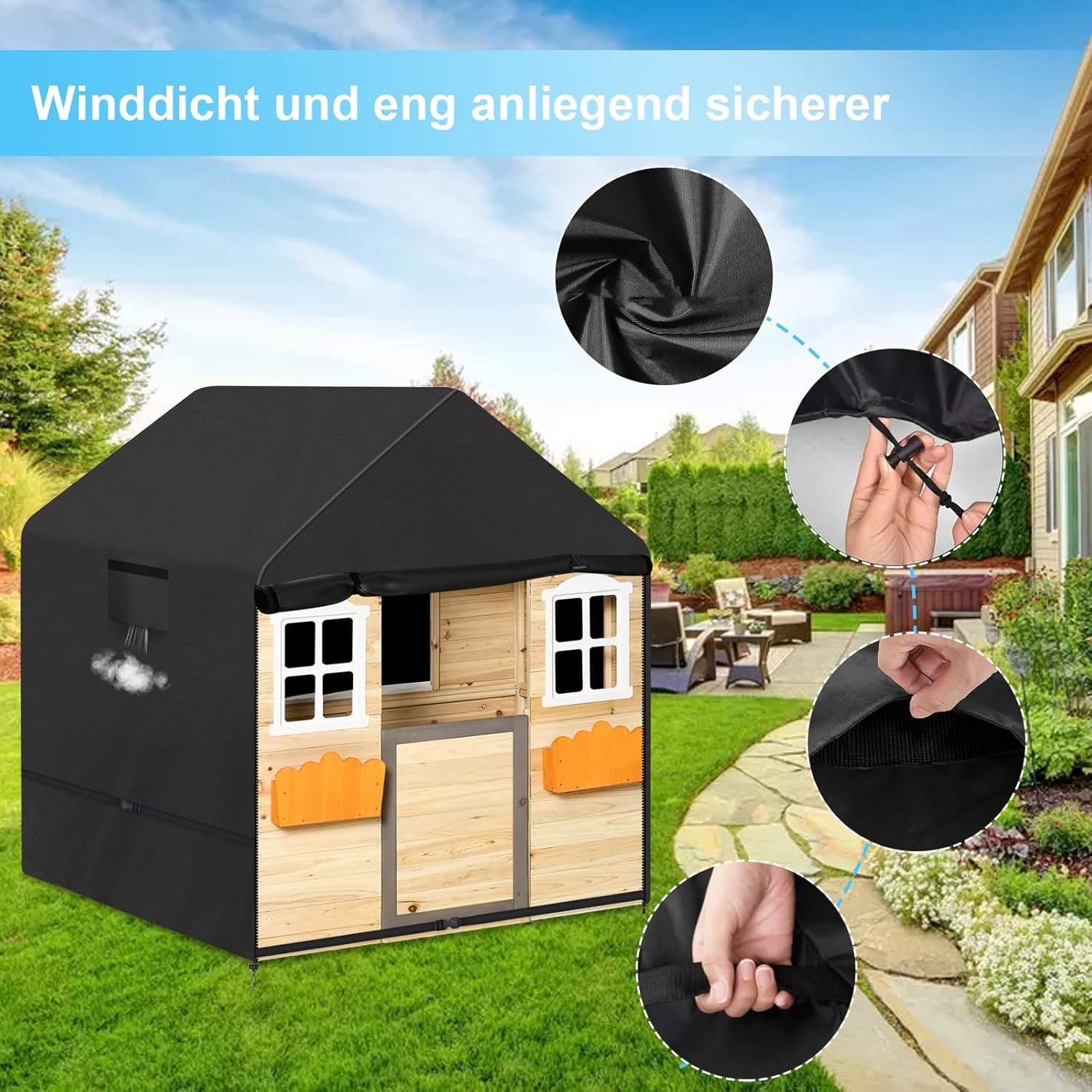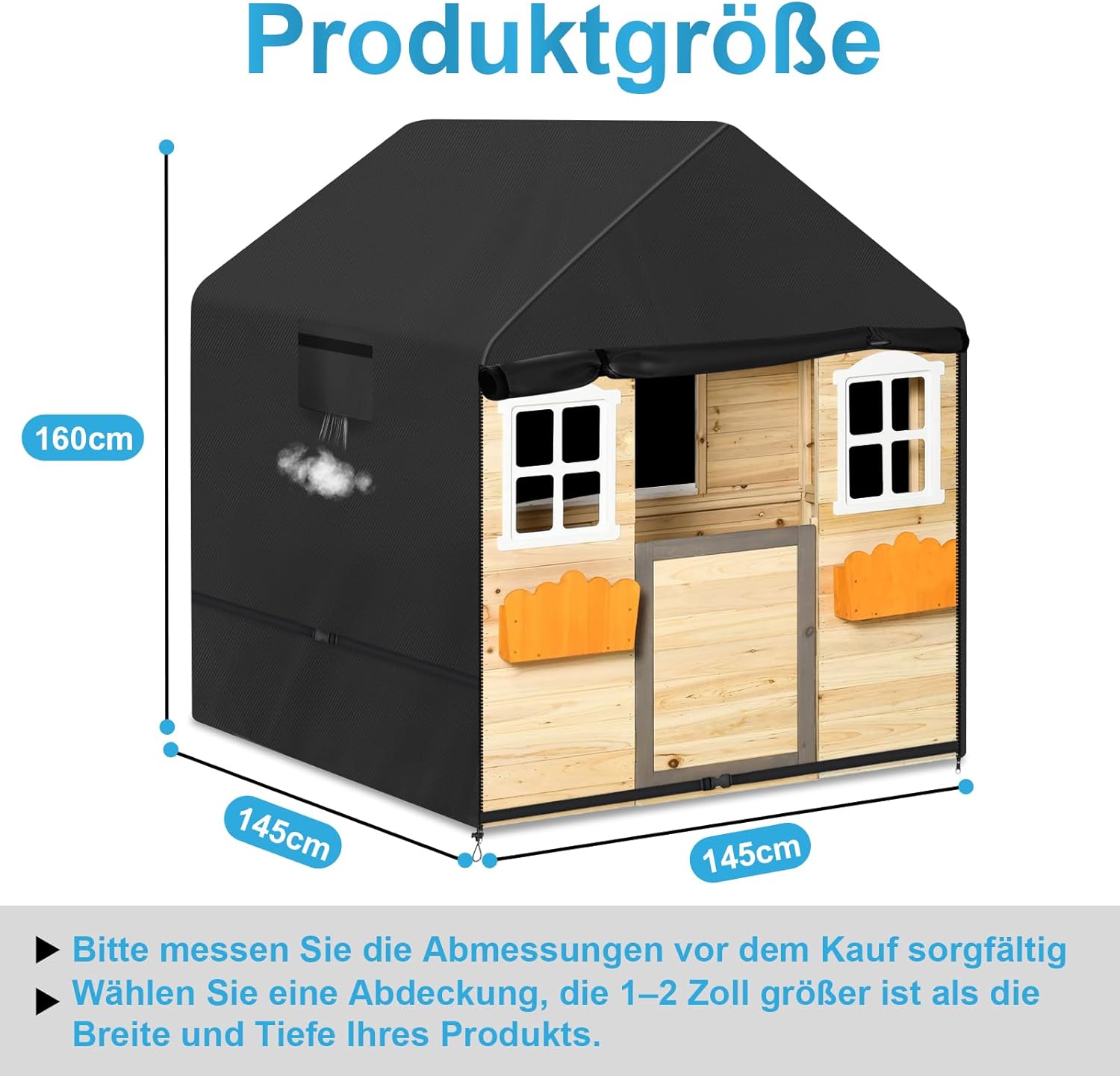 【Materiale durevole 600D】 Il telone per cabina per bambini da esterno è realizzato in resistente tessuto Oxford 600D, con un rivestimento in PU impermeabile all'interno. Il tessuto è resistente agli agenti atmosferici, ai raggi UV e agli strappi. La copertura per casetta per bambini da esterno mantiene pulita la casetta dei bambini e ne prolunga la durata.,Impermeabile e resistente ai raggi UV: la copertura per casetta da giardino per bambini è progettata con strisce impermeabili sulle cuciture superiori per impedire efficacemente l'ingresso di acqua. La copertura della casetta dei giochi per bambini presenta anche un design con doppia cucitura per proteggere in modo ottimale la casetta dei giochi per bambini dalle condizioni atmosferiche avverse. Il rivestimento interno protegge efficacemente la casetta dei bambini dai raggi UV.,Design resistente e antivento: la copertura della casetta dei bambini ha un orlo con cordino elastico regolabile. Inoltre, i bottoni automatici regolabili su entrambi i lati possono fissare saldamente la copertura della casetta dei giochi alla casetta dei giochi per bambini e adattarla più saldamente. Il nostro design è semplice e facile da installare e fornisce un'eccellente protezione contro i forti venti. 【Dimensioni universali】 La copertura protettiva per la casa dei bambini misura 145*145*160 cm. Per garantire un adattamento ottimale alla tua casetta dei giochi per bambini, controlla le dimensioni della tua casetta dei giochi per bambini. Si consiglia di scegliere una copertura da 1 a 2 pollici più grande della casetta dei giochi per bambini per garantire una copertura ideale. La nostra copertura per cabina per bambini da esterno si adatta alla maggior parte delle casette per bambini disponibili sul mercato. 【Facile da pulire, riutilizzabile】 La copertura per casetta da esterno per bambini è estremamente facile da mantenere. Puoi semplicemente pulirlo con un panno umido o sciacquarlo con acqua e poi lasciarlo asciugare al sole. La copertura protettiva per la casetta dei bambini viene fornita con una pratica custodia in modo da poterla riporre facilmente quando non in uso