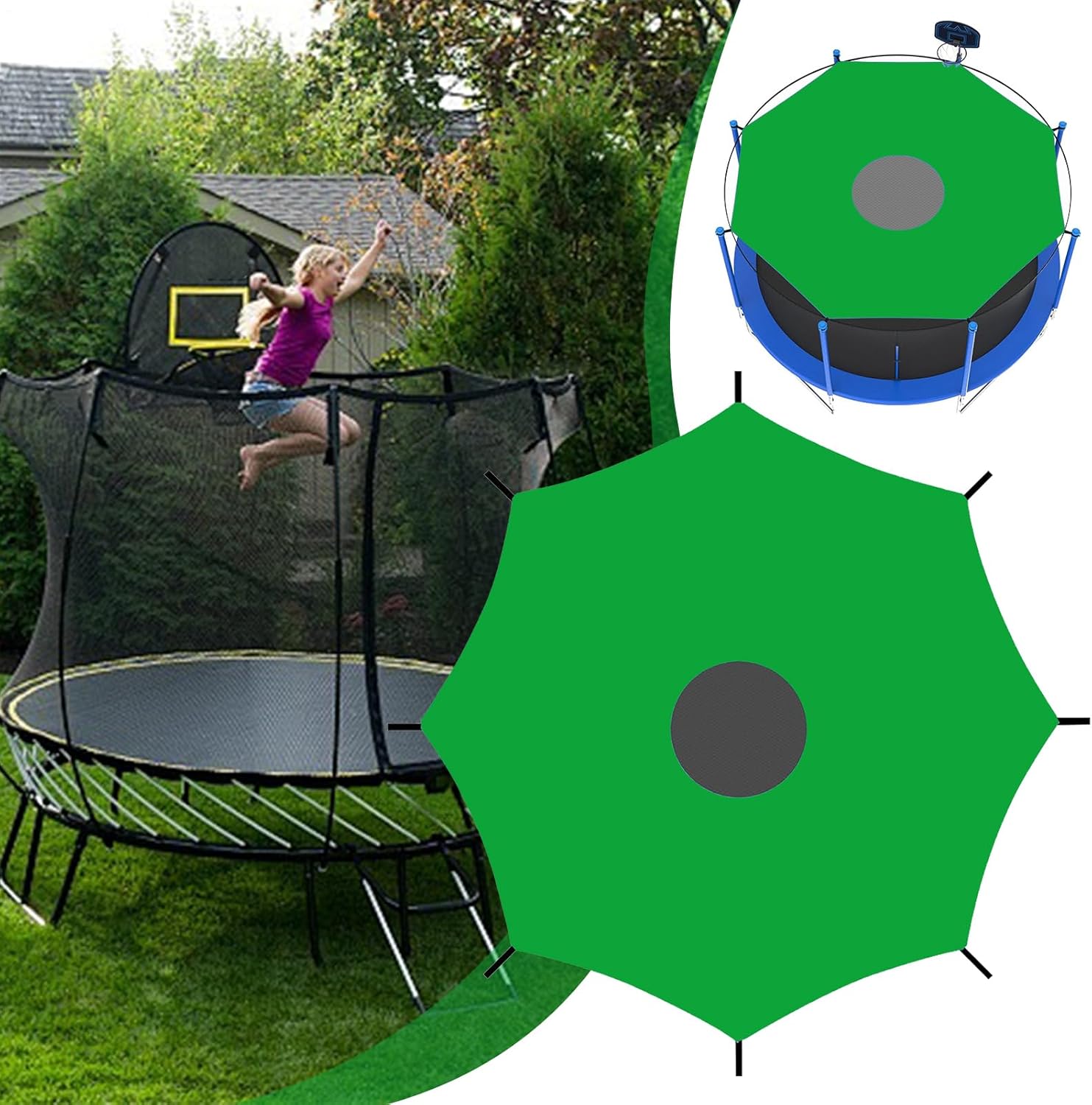 Piacere di gioco sicuro: con una struttura resistente al calore e una protezione solare ideale, questa copertura per trampolino offre la massima protezione UV grazie al rivestimento anti-UV, garantisce sicurezza e piacere di rimbalzare ad ogni utilizzo. Protezione contro pioggia e sole: questa copertura per trampolino offre una protezione efficace contro le intemperie stagionali. L'ampio design si adatta a configurazioni da 6 o 8 barre e garantisce una protezione ottimale contro la pioggia e i raggi UV in modo che la superficie di salto rimanga asciutta e sicura tutto l'anno. Barriera contro l'inquinamento: protegge efficacemente foglie, sporco e umidità per proteggere in modo ottimale il tuo trampolino e mantenerlo pulito tutto l'anno. Resistenza agli agenti atmosferici di alta qualità: strato interno con rivestimento UV appositamente progettato combinato con materiale Oxford impermeabile e uno strato intermedio antistrappo per una resistenza duratura in qualsiasi condizione atmosferica. Comoda soluzione pieghevole: ideale per l'uso stagionale, la copertura si ripiega in un attimo e si ripone per occupare spazio. Speciali maniglie di trasporto e chiusure resistenti agli agenti atmosferici ottimizzano la manovrabilità garantendo una protezione costante dal sole e dalle intemperie.