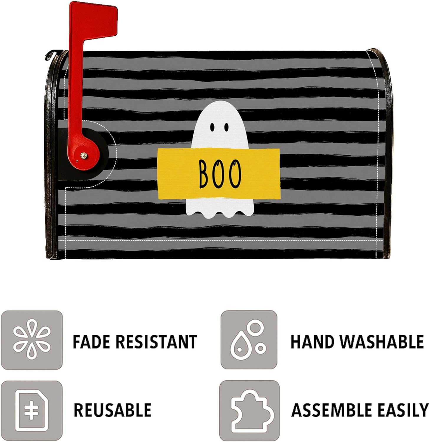 【Elementi di tema ed elementi di design】 Abbraccia lo spirito di Halloween con un fantasma giocoso e audaci strisce nere, crea un'atmosfera divertente e festosa. Funzionalità e installazione semplice: il design magnetico si adatta facilmente alle cassette postali standard e consente un'installazione rapida senza attrezzi. Scenari di utilizzo: ideali per le celebrazioni di Halloween, l'uso quotidiano o per migliorare le riunioni di famiglia, facendo risaltare la tua casa. Stile e valore decorativo: questo design fantasioso completa l'estetica rustica della fattoria o l'estetica moderna e aggiunge un tocco alla tua decorazione esterna. 【Riutilizzabilità e potenziale regalo】 Questa copertura pieghevole e riutilizzabile è un'ottima aggiunta alla tua collezione di decorazioni stagionali, rendendola una scelta versatile.