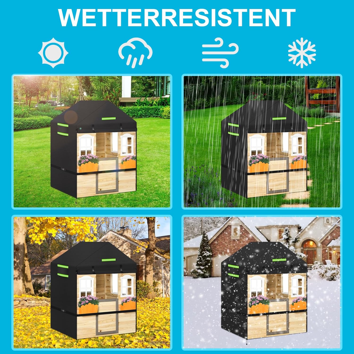【Qualità】: questo resistente telone per cabina per bambini da esterno è realizzato in tessuto Oxford 600D ad alta densità aggiornato, più spesso e più resistente di molti modelli tradizionali 420D, oltre a eccellenti proprietà impermeabili, elevate resistenza allo strappo e antistatiche. La copertura per casetta per bambini in tessuto per esterni utilizza la comprovata tecnologia a doppia cucitura che aumenta significativamente la resistenza delle cuciture. Facile da usare: la copertura per cabina da giardino per bambini è dotata di 2 fibbie, 1 laccio laterale e un cordoncino che ne consentono il fissaggio sicuro alla cabina da giardino per bambini e ne rafforzano ulteriormente la presa. La gestione è semplice e la copertura per cabina da esterno per la casa dei bambini può essere facilmente regolata anche in caso di vento forte. Le strisce riflettenti migliorano la visibilità notturna. 【Caratteristiche】: La copertura per mantenere la casetta dei giochi per bambini soddisfa gli standard di protezione ambientale EU7P, rendendola sicura e innocua per la salute. La copertura per la casetta dei giochi per bambini all'aperto protegge efficacemente la casetta dei giochi dei vostri amati bambini da pioggia, neve, sole, polvere e altri influssi ambientali e offre quindi la migliore protezione possibile. 【Dimensioni】: la copertura per cabina da giardino per bambini è disponibile nelle seguenti dimensioni: 112x107x130 cm, 127x110x130 cm, 145x145x160 cm e 148x113x128 cm, 220x174x173 cm. Prima dell'acquisto, misura attentamente la lunghezza, la larghezza e l'altezza della tua casetta da giardino per bambini per assicurarti che la copertura della cabina per bambini da esterno si adatti perfettamente e fornisca una protezione ottimale. 【Servizio】: il nostro obiettivo è produrre coperture protettive per la casa dei bambini di alta qualità. Se la copertura protettiva per la casetta dei giochi per bambini che hai ricevuto è danneggiata, contattaci e ti forniremo immediatamente una sostituzione gratuita. Apprezziamo i tuoi suggerimenti di miglioramento poiché ci aiuteranno a ottimizzare ulteriormente la nostra copertura per la casetta dei giochi per bambini.