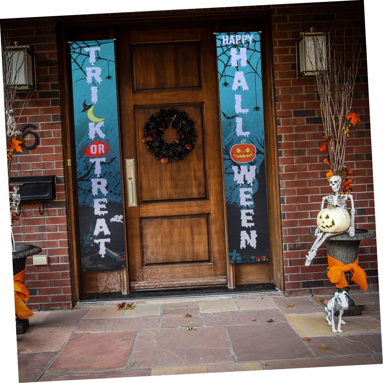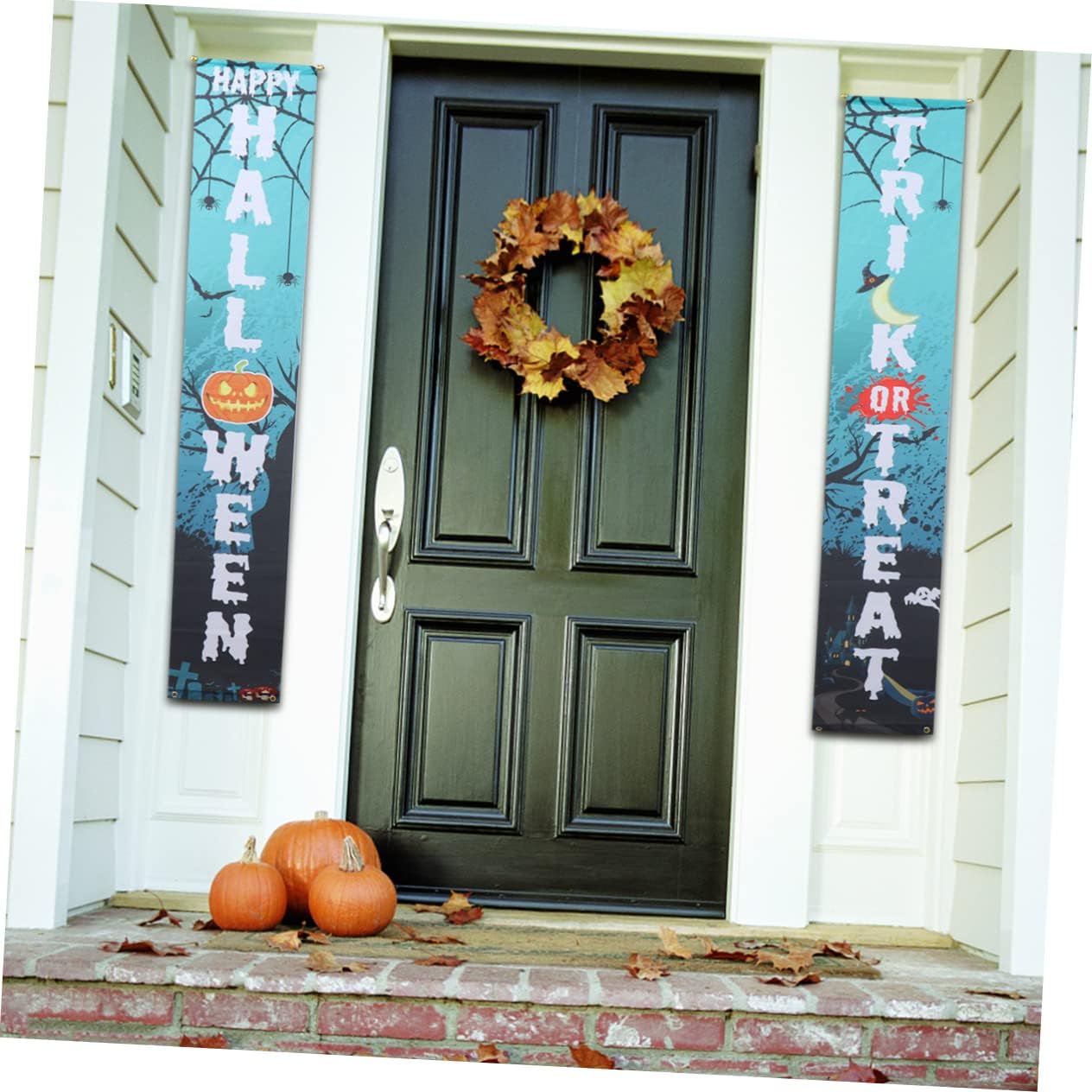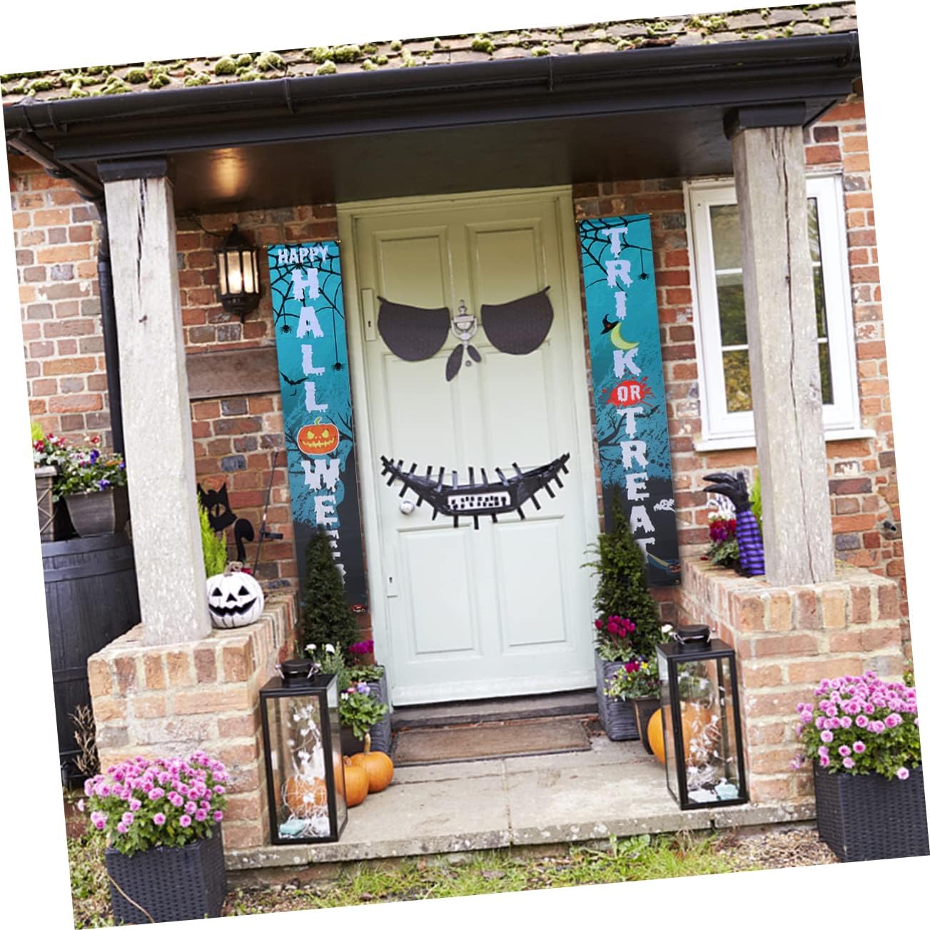 Coppie di Halloween - È stampa digitale e decorazioni colorate per la casa. Banner per porta di Halloween - Realizzato in materiale e bellissima decorazione dolcetto o scherzetto di Halloween. Appendini per decorare - Un set di decorazioni di Halloween ha un colore scuro e un'atmosfera spettrale, appendendo le decorazioni del portico di Halloween. Insegna del portico di Happy Halloween - Ideale per una festa di Halloween o una festa in costume di Halloween, decorazioni di Halloween. Verde: può contribuire all'atmosfera festosa e di Halloween.