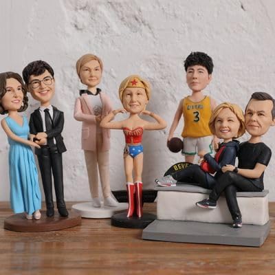 【Personalizzazione semplificata】: fai clic su "Personalizza" per caricare la tua immagine e selezionare la dimensione, ecc. Personalizzazione bobblehead di 2 persone e 2 cani/gatti inclusa. 【Alta somiglianza】Ogni artista del nostro team ha più di 10 anni di esperienza per garantire un alto livello di somiglianza con il tuo viso. I nostri artisti scolpiscono attentamente ogni dettaglio per catturare le tue caratteristiche uniche. 【Prove rapide】Offriamo prove rapide (foto di anteprima) e revisioni gratuite illimitate, così puoi rivedere e approvare ogni passaggio per una soddisfazione garantita. 【Lavorazione efficiente】 Poiché le nostre statuette sono realizzate a mano al 100% dalla testa ai piedi, sono necessari 3-5 giorni per scolpire le figure, con ogni revisione che richiede 2-3 giorni aggiuntivi. 【Materiali durevoli】Realizzate in argilla polimerica di alta qualità, le statuette Novela sono durevoli e resistenti allo sbiadimento. Questo regalo divertente e unico può essere apprezzato per anni.