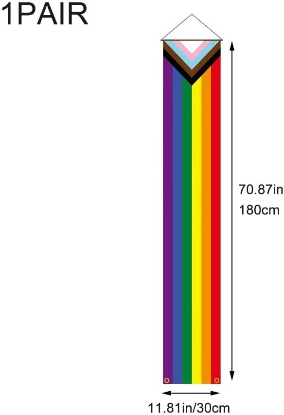 Frizione per porta arcobaleno: materiale in tessuto poliestere, flessibilità e durata eccellente, sicuro e durevole, può essere molto utilizzato. Decorazione porta arcobaleno: ideale per decorare la porta per renderla festosa e rendere la tua casa più bella. Lo striscione del portico del Pride Day può essere appeso al portico, alle finestre e alle pareti, creando un benvenuto unico per tutti gli ospiti della festa. Ampiamente usato: striscione per portico del Pride Day. La coppia arcobaleno di oggetti di scena omosessuali può essere utilizzata per feste LGBT, feste LGBTQ e feste omosessuali. Coppie arcobaleno: colori vivaci e bel design, possono essere utilizzati per abbellire il tuo cortile, prato o giardino. Struttura semplice, funzionamento facile, design luminoso e sensazione di mano confortevole, puoi usarlo con sicurezza. Bandiera arcobaleno dell'orgoglio: un simbolo dell'orgoglio lesbico, gay, bisessuale, transgender e dei movimenti LGBT.
