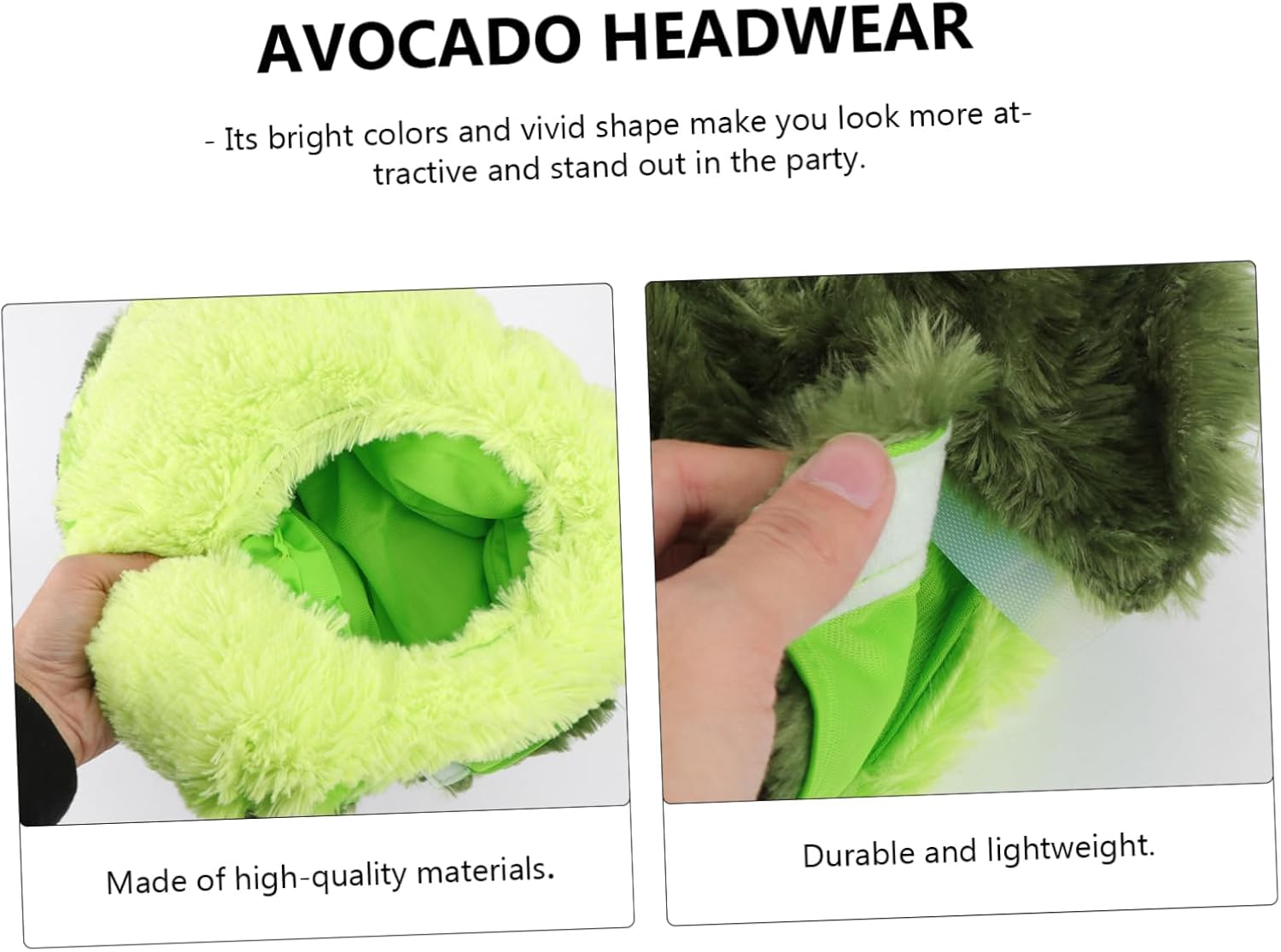 Descrizione prodotto include 1 copricapo Caratteristiche - Colore: Forma del frutto. - Dimensioni: 28 x 5 cm/15,72 x 1,97 pollici Cappellino da cartone animato. -Informazioni sul prodotto:Avocado - Materiale: Cappello avocado in peluche e cotone PP. - Realizzato in materiale prima qualità, è da indossare e regala una piacevole esperienza utilizzo del cappello da cartone animato. - design generale è e e l'atmosfera festosa è forte. Cappello a forma frutta. - per festeggiamenti Halloween, feste in maschera, travestimenti, spettacoli teatrali e altro ancora Copricapo avocado. - Non è solo , ma ha anche un forte effetto decorativo. Copricapo divertente. - L'adorabile cappello a forma frutta subito l'attenzione e ti distingue dalla massa. Copricapo a forma frutta. Informazioni sulle merci Cappello da cartone animato è un adorabile cappello a forma frutta per cosplay. Forma frutta design della forma rende adatto per Halloween, cosplay, feste e altro. Cappello frutta peluche Allora, cosa stai aspettando? Prendilo. Copricapo frutta design generale è e , l'atmosfera festosa è forte Avviso di sicurezza 1