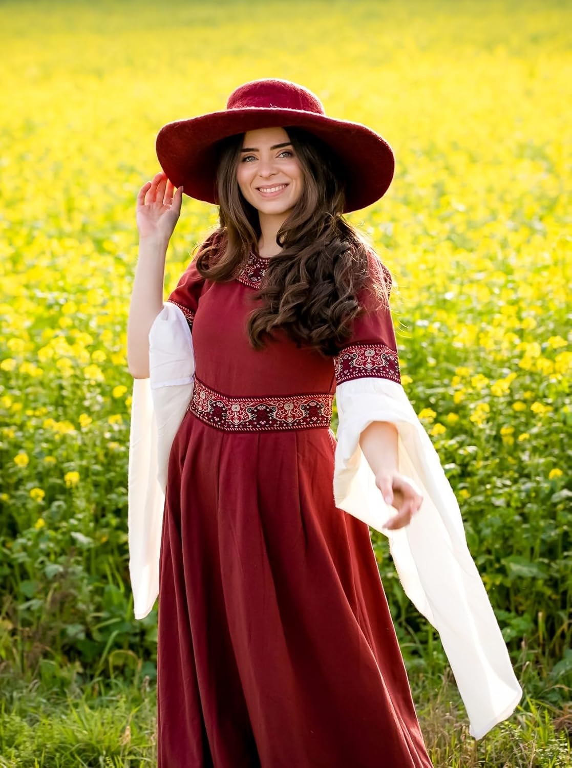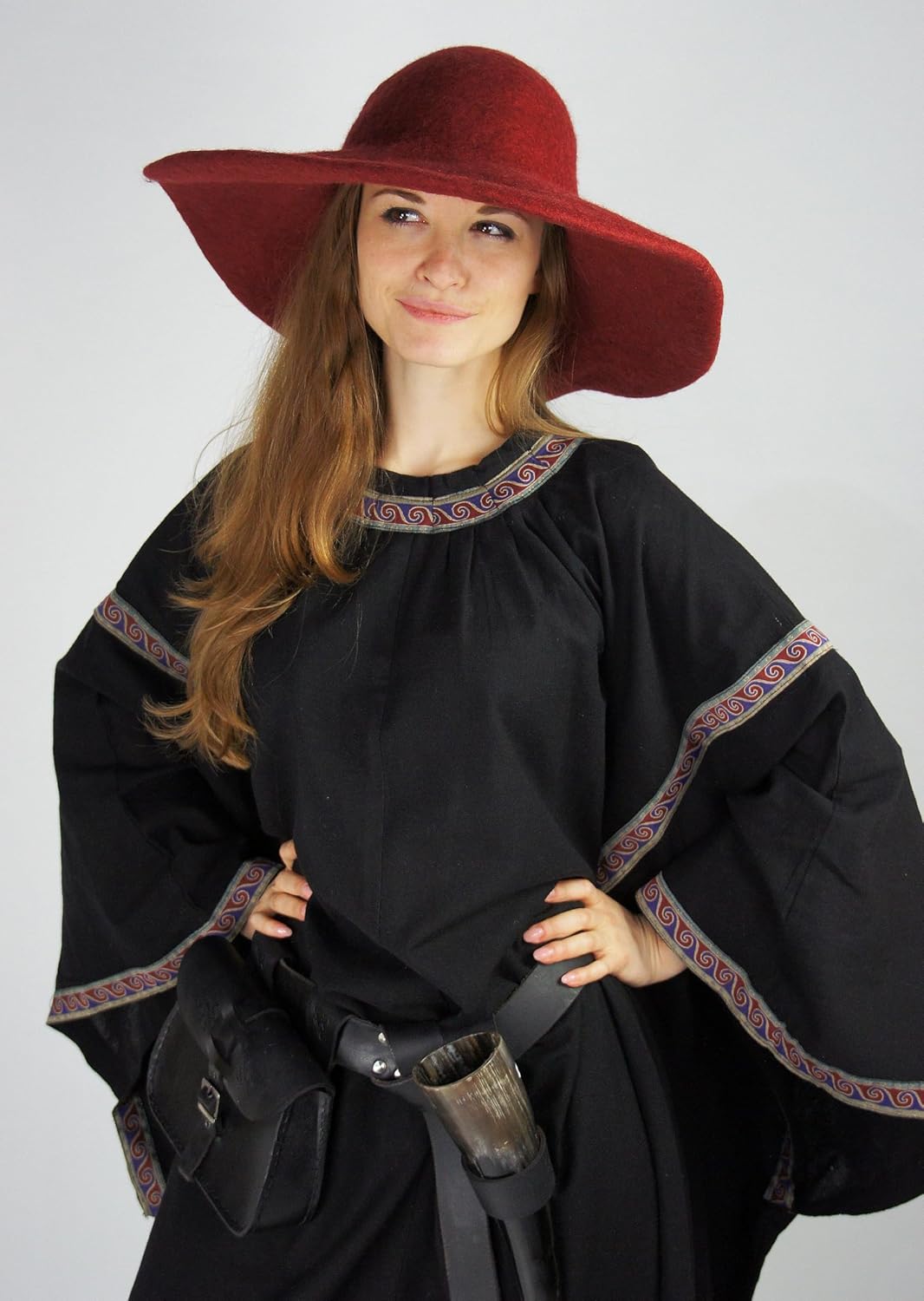 Ein qualitativ hochwertiger Hut, Krempe ist groß und auch der Hut selbst. Ich brauchte dazu ein Lederband, fest herum gebunden, jetzt sitzt er, noch etwas Fell und Federn, eine Seite hoch genäht, macht wirklich was her. Kaufempfehlung! Evtl. wird eine Hut-Verkleinerung gebraucht...