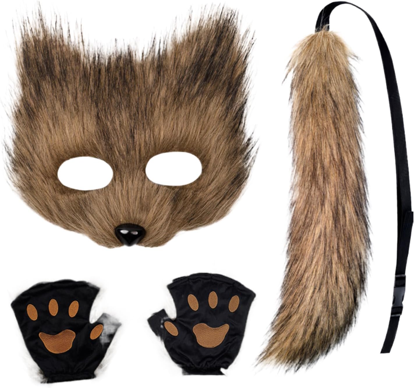 Copricapo e Coda | Halloween Cosplay | Kit Completo con Coda Velo Viso Guanti Zampe | Per Ragazzi Adulti Feste Carnevale