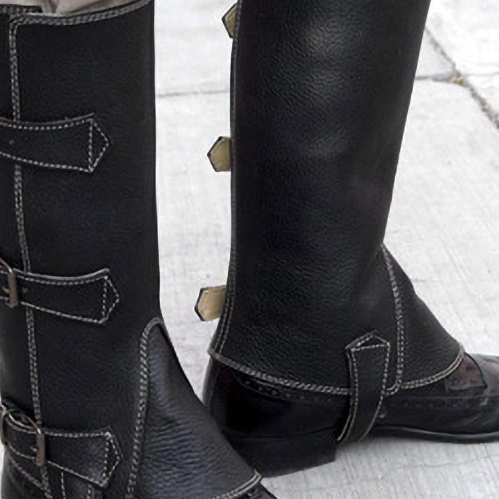 1. Realizzato in pelle PU di alta qualità, resistente, confortevole e leggero, può fornire la migliore protezione per la parte inferiore della gamba 5. Adatto a una varietà di occasioni, come feste a tema, carnevale, spettacoli di strada, Halloween, costumi natalizi, replay storici, oggetti scenici, cosplay, LARP, ecc. 2. Cucito a mano + design con fibbia della cintura laterale, può regolare la tenuta della parte inferiore della gamba per applicarla a diversi gruppi. disponibile in 2 colori 4. Fornisci un perfetto look medievale o rinascimentale. è un ottimo accessorio protettivo per la caccia, il tiro e altre attività all'aperto 3. Il design accattivante aggiunge una sensazione forte ed eroica, molto accattivante, che ti farà sembrare un cavaliere, cacciatore, soldato o guerriero ecc.