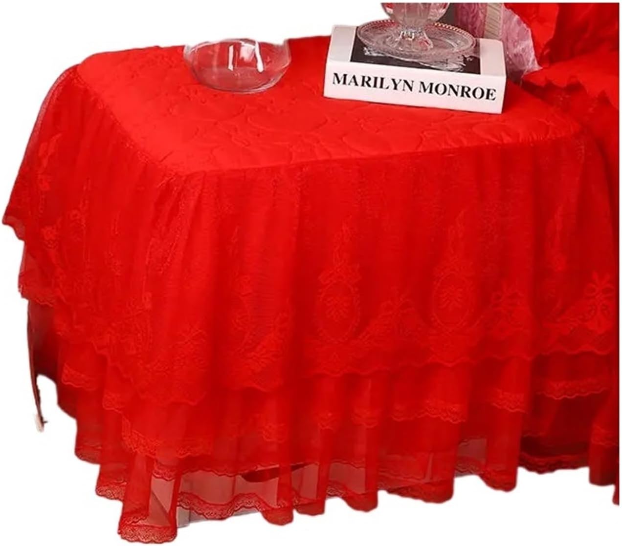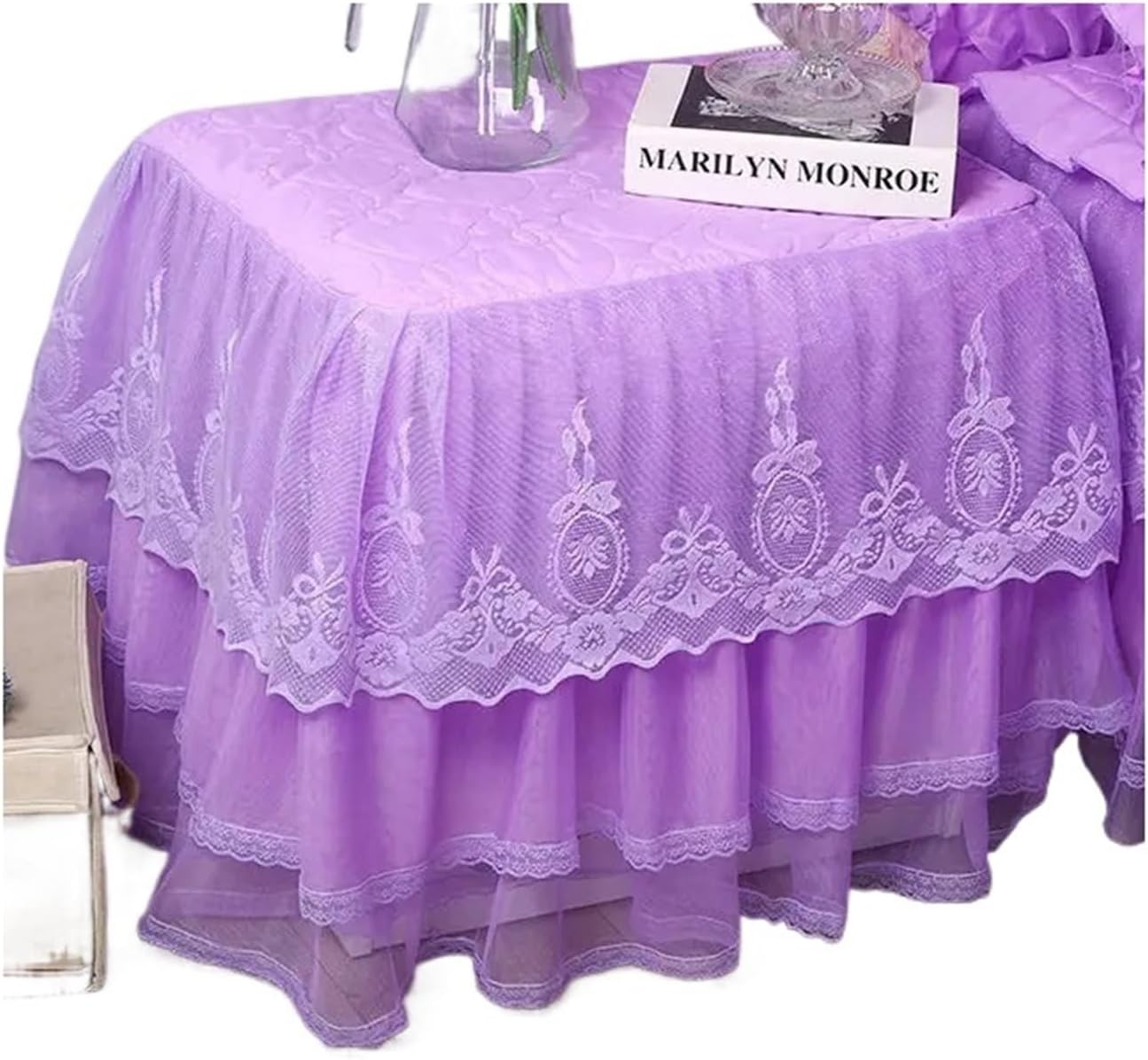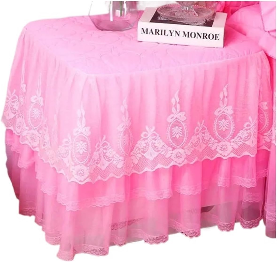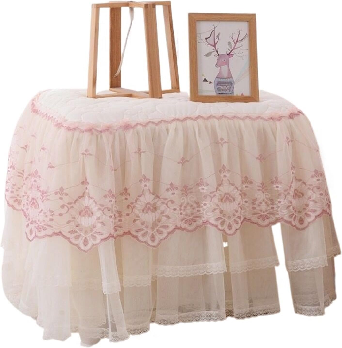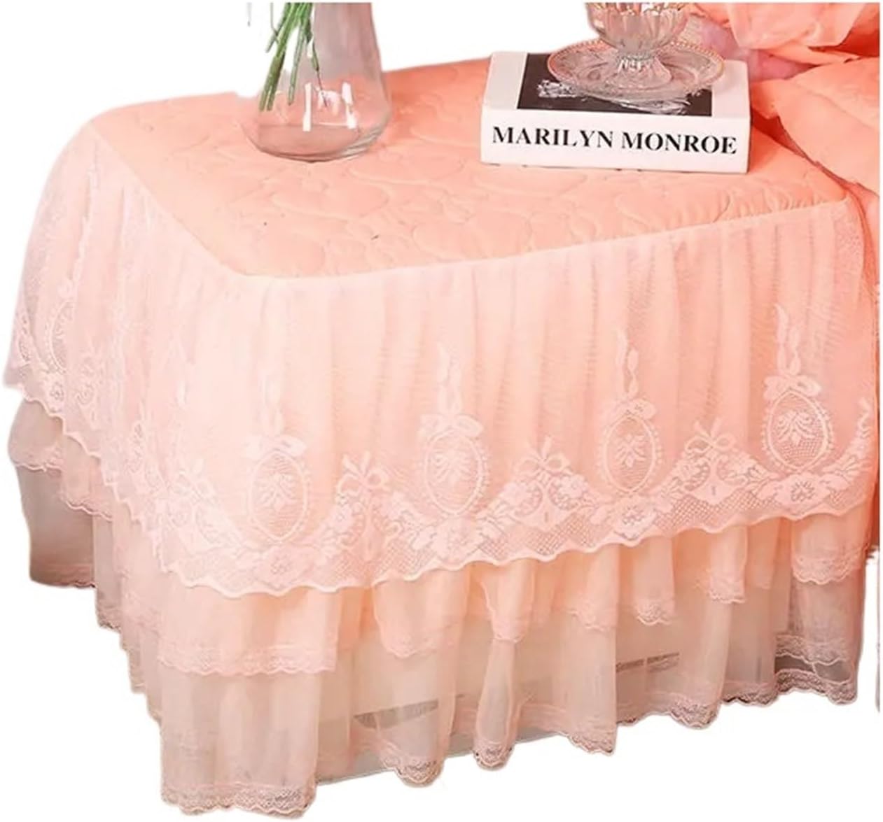 Copripolvere per Comodino Copritavolo Comodino in Pizzo Copritavolo Trapuntato Copripiumino for Camera da Letto Gonna con Imbottitura in Cotone per Comodini(Color4,45x50cm)