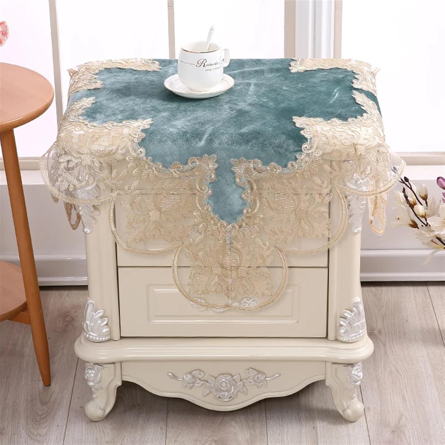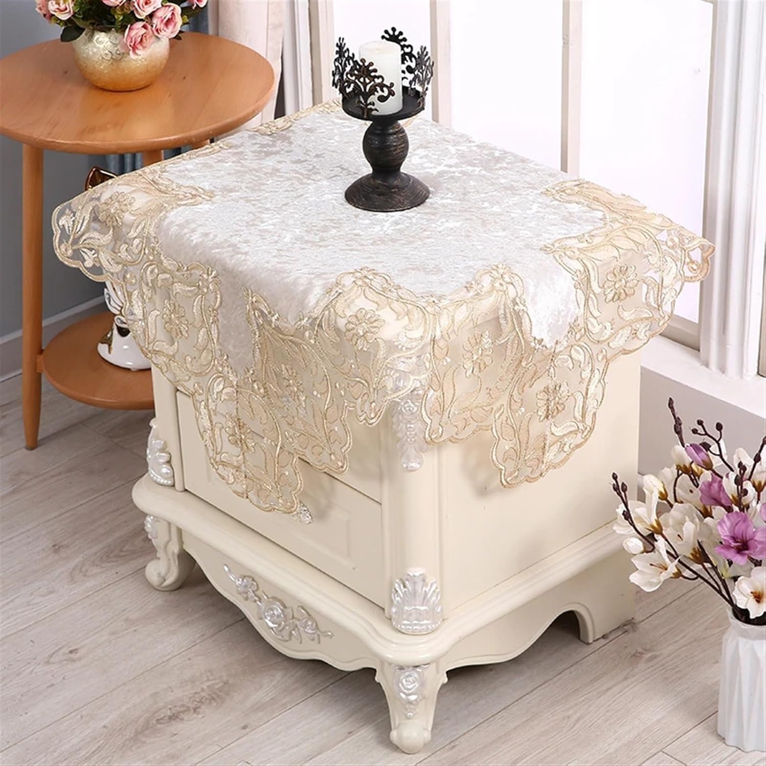 Copripolvere per Comodino Tovaglia da Comodino, Fodera in Tessuto di Velluto Antipolvere, tovaglia Quadrata in Pizzo solubile in Acqua, Frigorifero per Comodini(Beige,65x65cm)