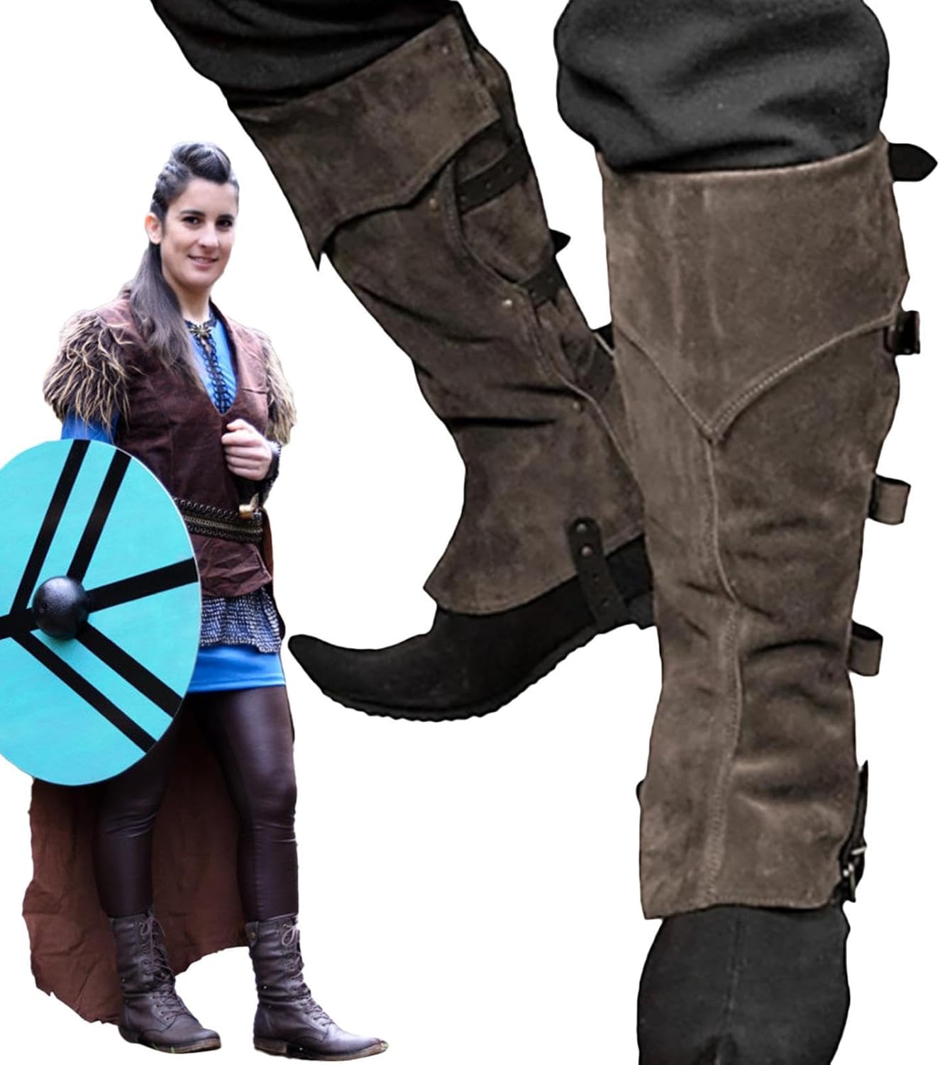 Trasforma il tuo outfit in pochi secondi con questi copriscarpe pirata in pelle di alta qualità. Queste federe sono adatte e possono essere riposte ovunque. Perfetto per eventi di Halloween e Natale o per l'uso quotidiano. Fai una dichiarazione senza introdurre nuove scarpe: basta infilare queste fodere sui tuoi stivali preferiti. Caratteristiche: Nome: copriscarpe medievali. Colore: nero, marrone, giallo. Materiale: pelle sintetica Peso: circa 280 grammi Circonferenza del polpaccio: elastico regolabile Contenuto della confezione: 1 paio di copriscarpe medievali