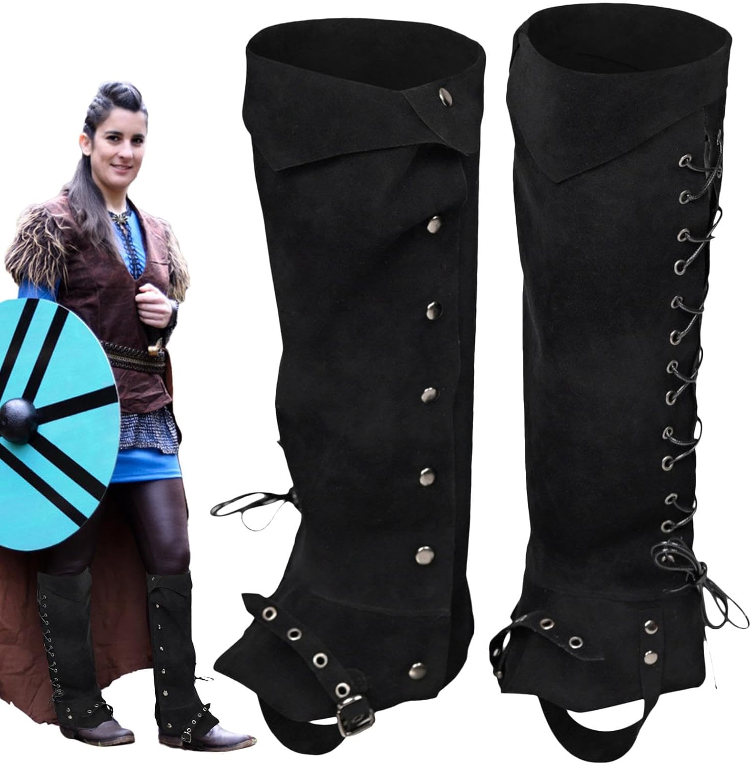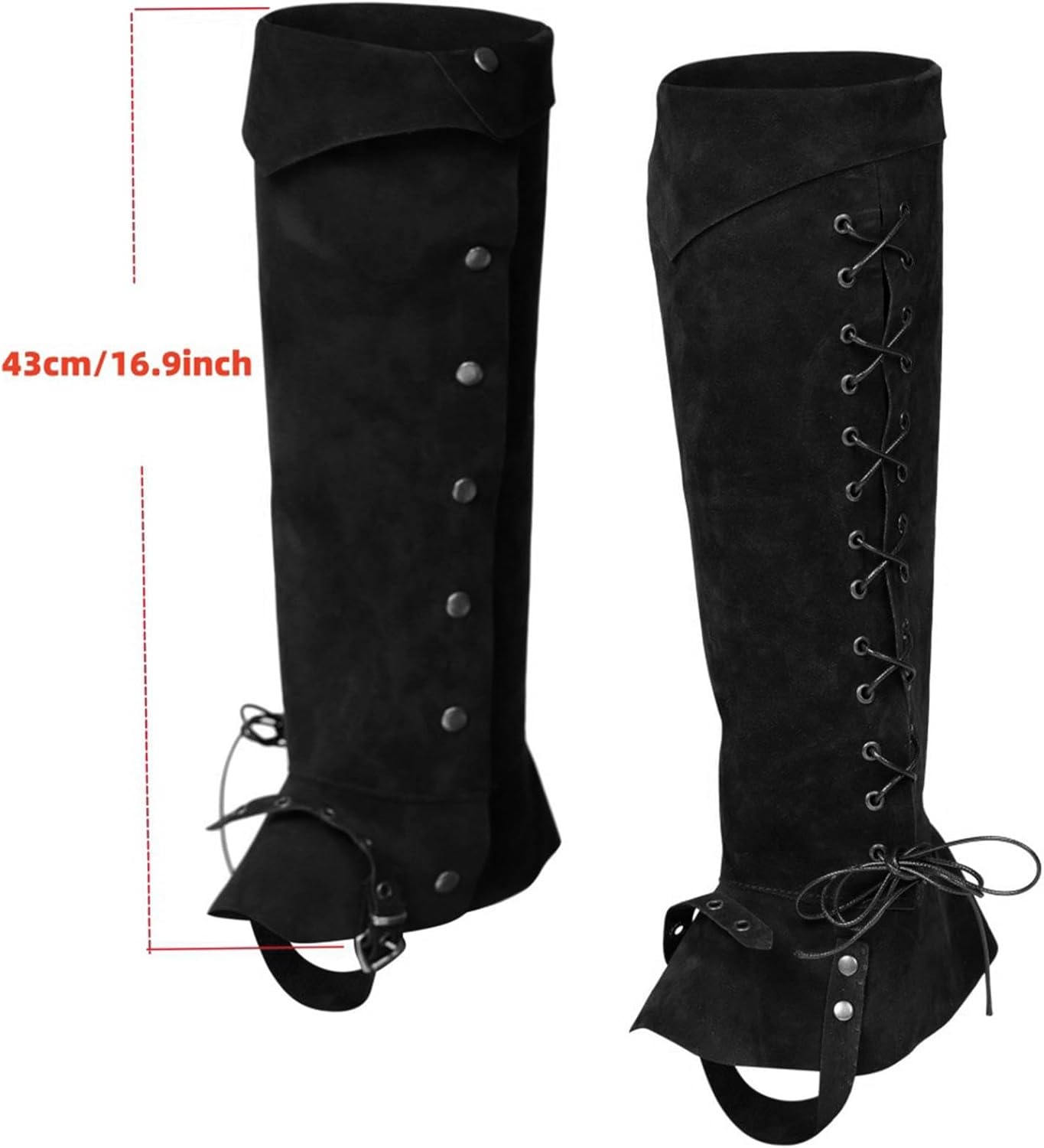 Create Retro Knight Style: Pirate Boot Covers sono una sorta di imitazione medievale adulto fantino copertura dello stivale con uno stile retrò, che può aiutare a creare uno stile retrò cavaliere dopo averlo indossato. Materiale in pelle artificiale: il costume è realizzato in pelle artificiale. È comodo, traspirante, forte, resistente all'usura e può essere utilizzato a lungo. Leggero e confortevole: il costume copriscarpe è leggero (circa 300 g) e comodo da indossare. Allo stesso tempo, è pieghevole e facile da riporre e trasportare. Design con corda elastica: le coperture per stivali da pirata Gli uomini adottano un design in corda elastica, in modo da poterlo facilmente regolare per adattarsi meglio in base alla circonferenza del polpaccio. Ampie applicazioni: i copriscarpe Viking sono adatti per fotografia, feste in maschera, giochi di ruolo, teatro, Halloween, Natale e altre attività e uso quotidiano.