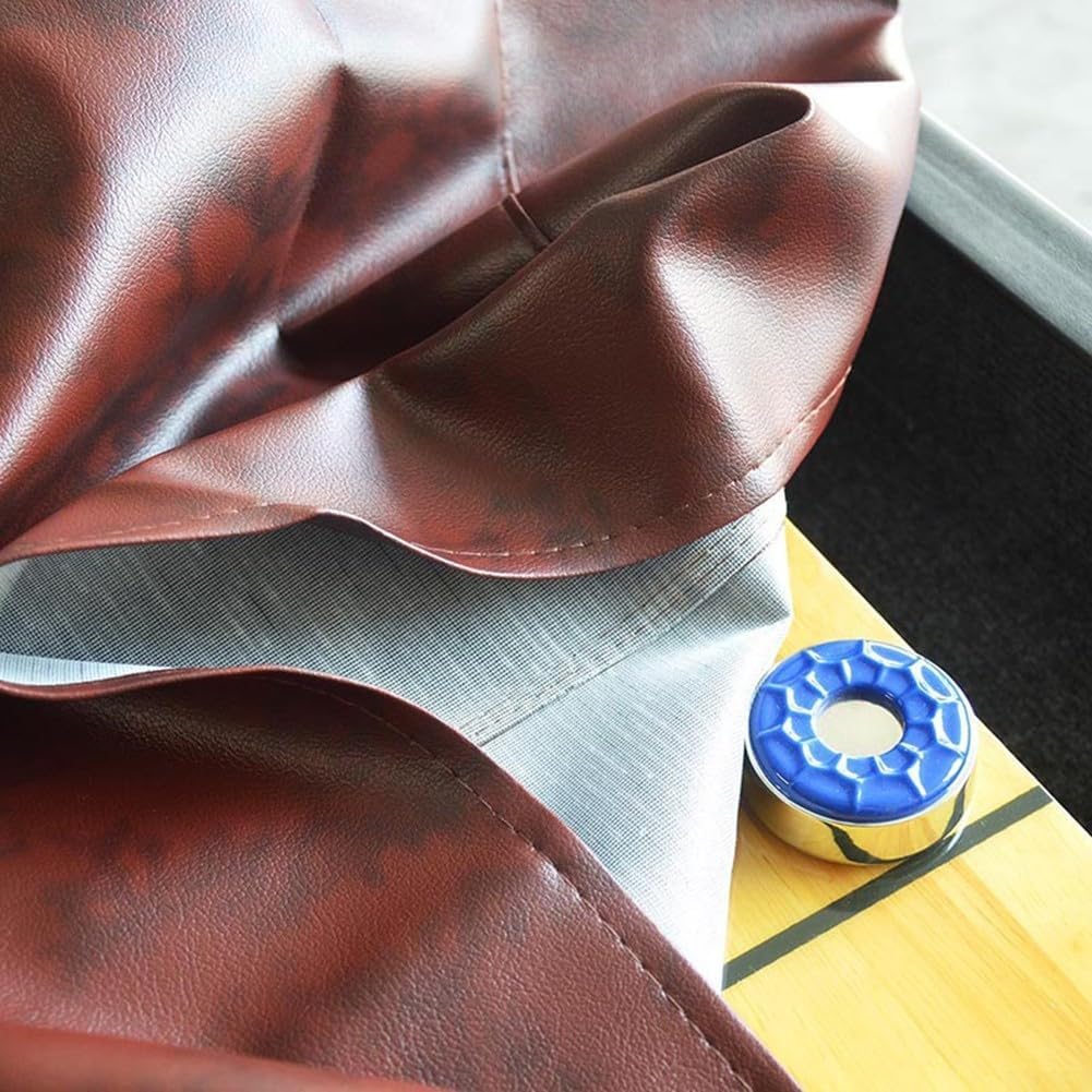 Protezione: progettato per proteggere il tavolo shuffleboard da polvere, fuoriuscite e peli di animali domestici quando non in uso, rimane pulito e pronto per il gioco. Materiale resistente: realizzato in pelle sintetica pesante con una morbida fodera in tessuto di cotone per una maggiore protezione, offre una sensazione di alta qualità e un uso duraturo. Facile manutenzione: prima di utilizzare la copertura, tutta la cera viene rimossa dal tavolo per proteggere la fodera in tessuto; basta spolverare la parte superiore con un panno asciutto per mantenere il suo aspetto incontaminato. Specifiche delle taglie: specificamente progettato per shuffleboard da 2,7 m, misura 287 cm di lunghezza, 68,6 cm di larghezza e 15,2 cm di profondità, una vestibilità aderente.
