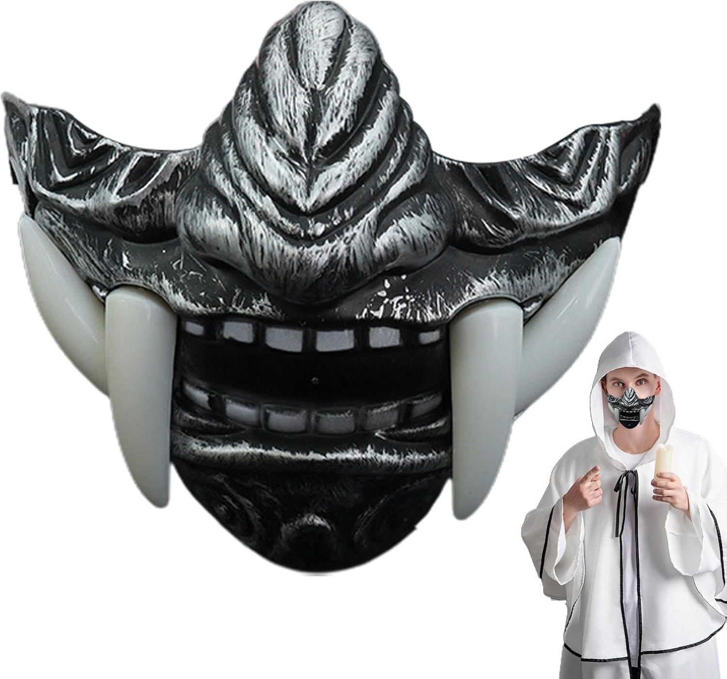 ➦Must-have di Halloween: con suo design unico, questa copertura per viso con espressioni feroci ed elementi di zanne è appositamente progettata per i giochi di ruolo di Halloween. Preparati a rubare immediatamente l'attenzione e a creare un'impressionante atmosfera horror che renderà indimenticabe una notte di spavento. ➦Superba maestria: dotata di zanne realistiche, la nostra copertura per viso è realizzata con materiali in resina di alta qualità per una consistenza forte e duratura. Dettagliato con colori ricchi e vivaci, migliora l'impatto visivo e fornisce un eccellente realismo. Indossalo senza preoccupazioni poiché può resistere all'usura a lungo termine. ➦Comodo al tatto: con la nostra copertura per viso Fangs, sperimenterai un comfort migliorato come mai prima d'ora. suo materiale delicato sulla pelle, combinato con strato di riempimento in morbida spugna, garantisce di evitare potenziali disagi causati dalle tradizionali coperture rigide per viso, offrendoti un capo rassante perfetto per una festa di Halloween di lunga durata. ➦Vestibità ideale: realizzata con dimensioni moderate, questa copertura per viso con zanne cosplay di Halloween si adatta alla maggior parte dei contorni del viso degli adulti. Non è né troppo stretto né troppo largo, garantendo prestazioni confortevoli durante gioco di ruolo e un effetto impeccabe. ➦Interazione potenziata: le coperture a metà viso con zanne offrono visibità limitata e movimento superiore del viso, promuovendo una comunicazione e un'espressione più animata e riconoscibe. suo esclusivo design a mezza copertura migliora l'interazione, avvicinando le persone.