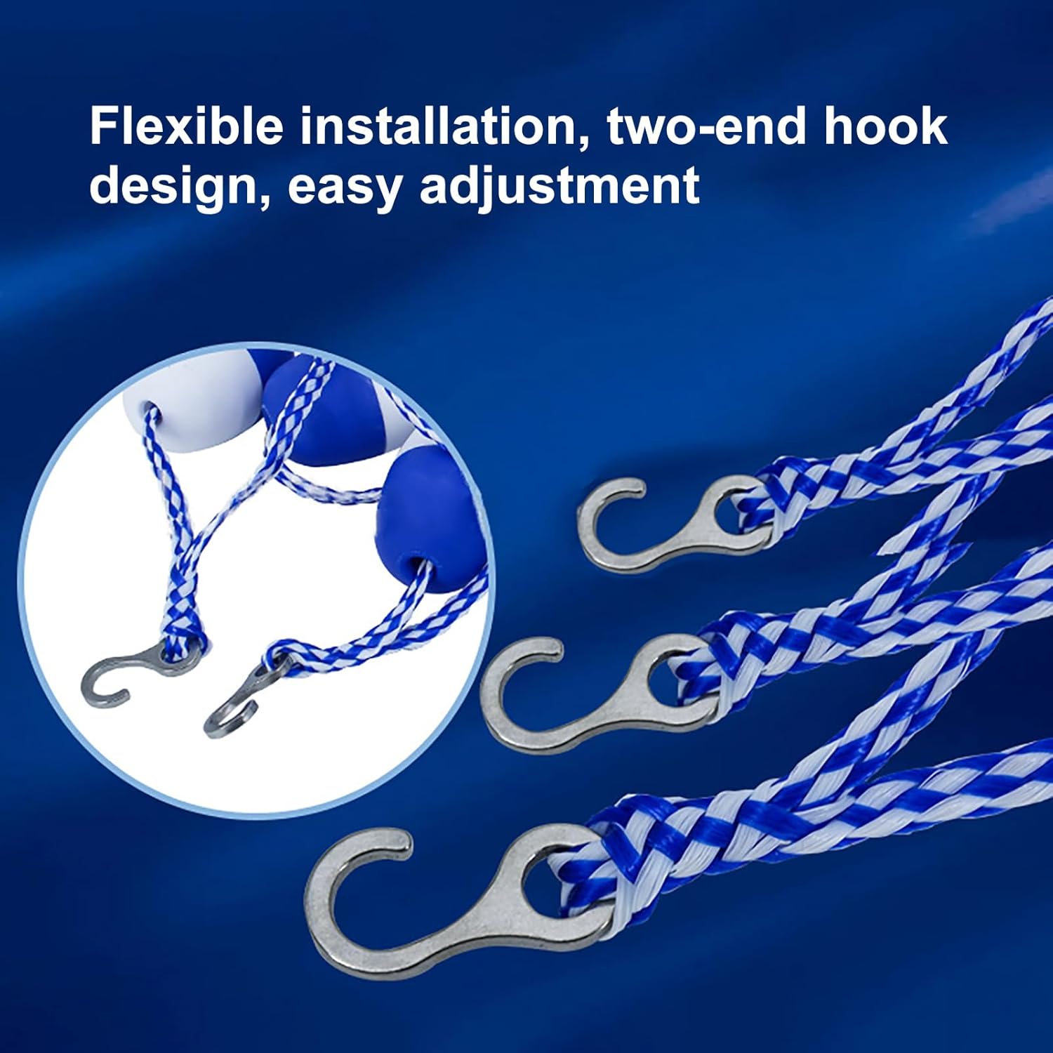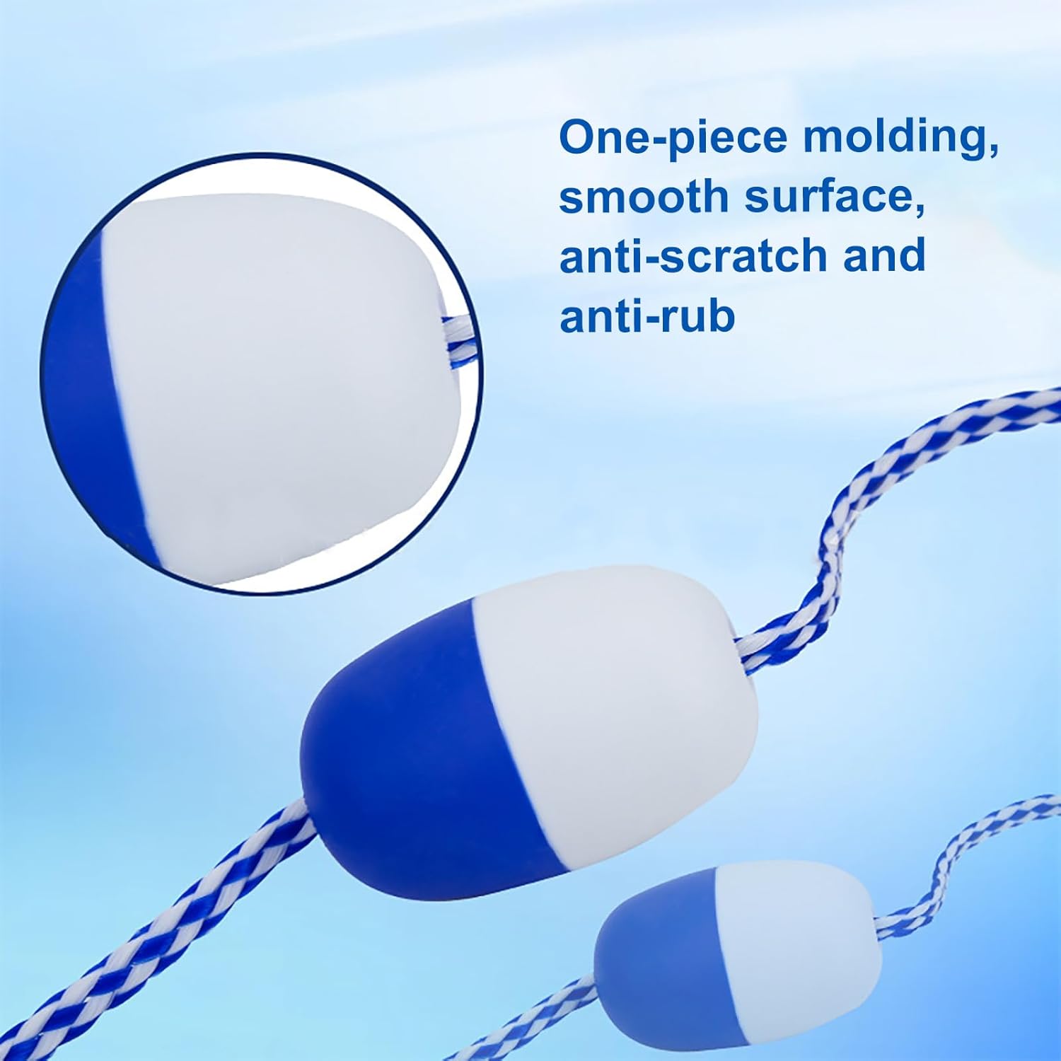 Divisione della piscina: le corde di isolamento delle boe di sicurezza vengono utilizzate per dividere le corsie della piscina, mantenere l'ordine in piscina e possono anche essere utilizzate per separare le zone di acque profonde da quelle di acque basse. Design ad alta visibilità: la boa per piscina adotta colori accattivanti, che possono essere visti chiaramente anche da lontano. Questo garantisce ai nuotatori di vedere chiaramente la corda di sicurezza della piscina. Corda galleggiante per piscina: superficie liscia, tocco confortevole, non c'è bisogno di preoccuparsi di graffiarsi le dita. Robusta e durevole, non si deforma, si strappa o si rompe facilmente. Ampiamente utilizzato: utilizzato per separare le corsie e le aree di nuoto, ampiamente utilizzato in piscine, corsi d'acqua, aree pericolose, spiagge, ostacoli in acque poco profonde, ecc. Installazione semplice: l'installazione è semplicissima. Basta legare le corde a entrambe le estremità del cavo di sicurezza per piscina e fissarlo. Può essere smontato quando non in uso. Semplicissimo.